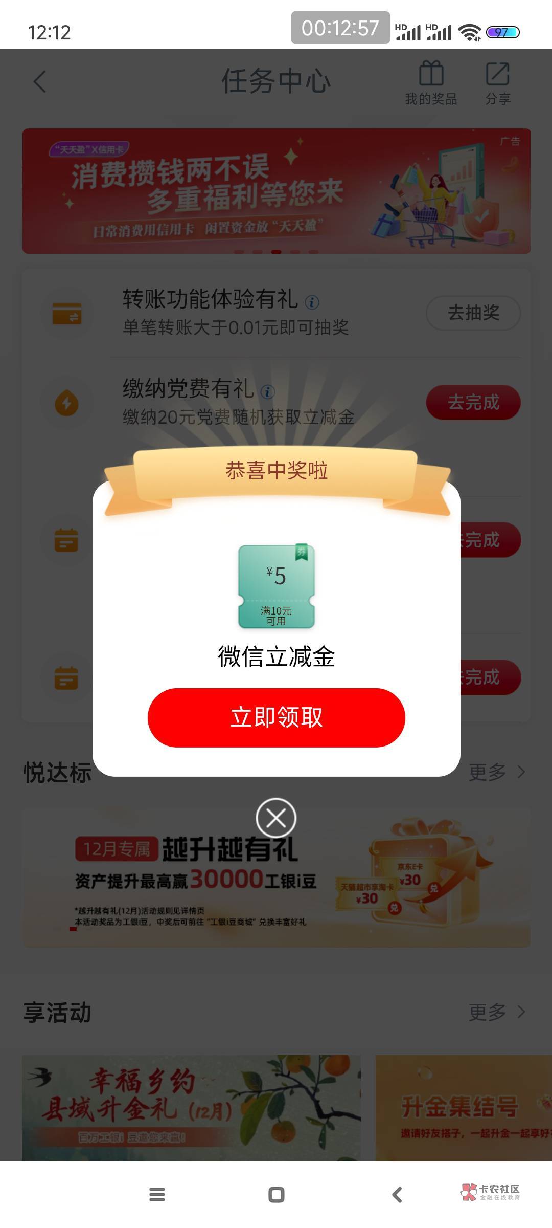 工行贵州任务中心转账功能体验有礼活动