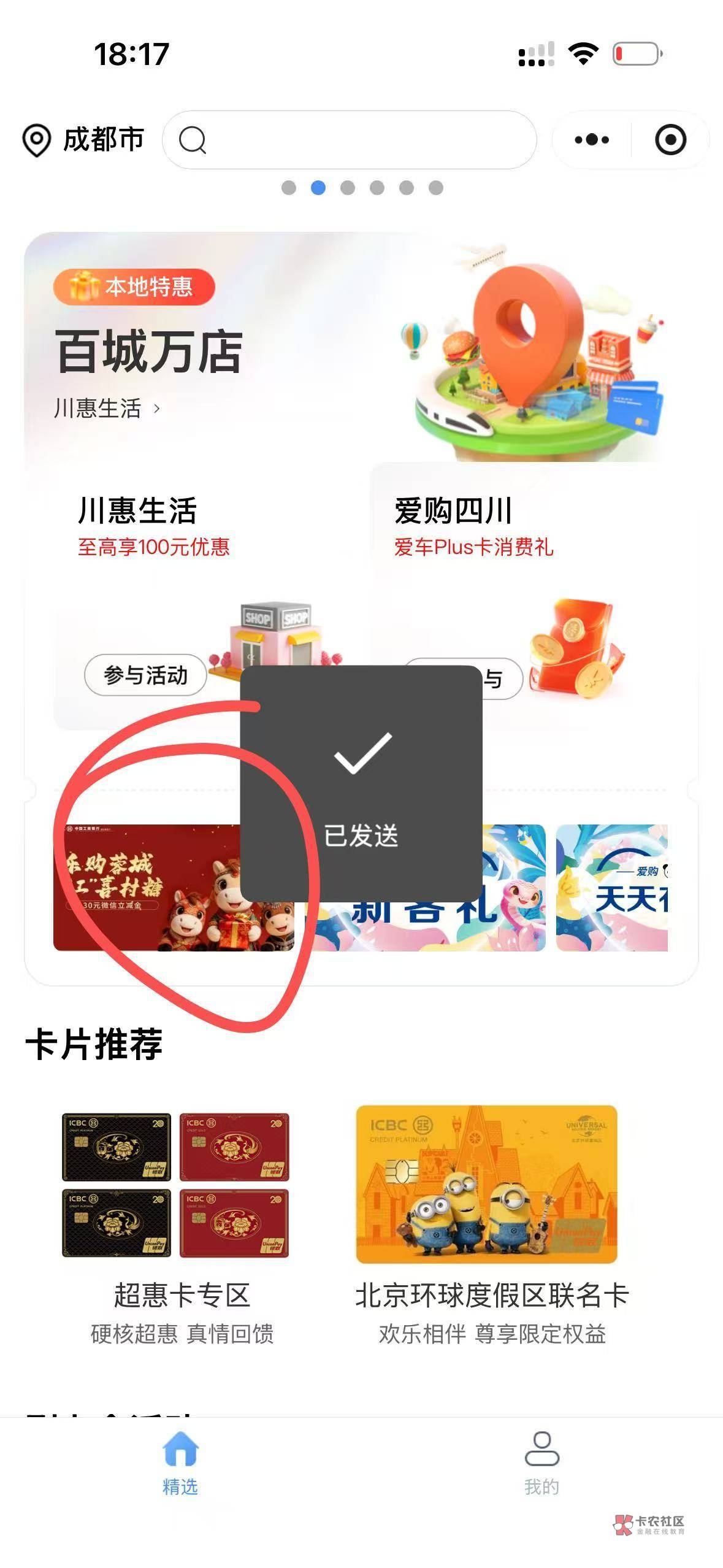 e生活小程序,借记卡归属地和手机号都是成都的领,30立减金[图片]