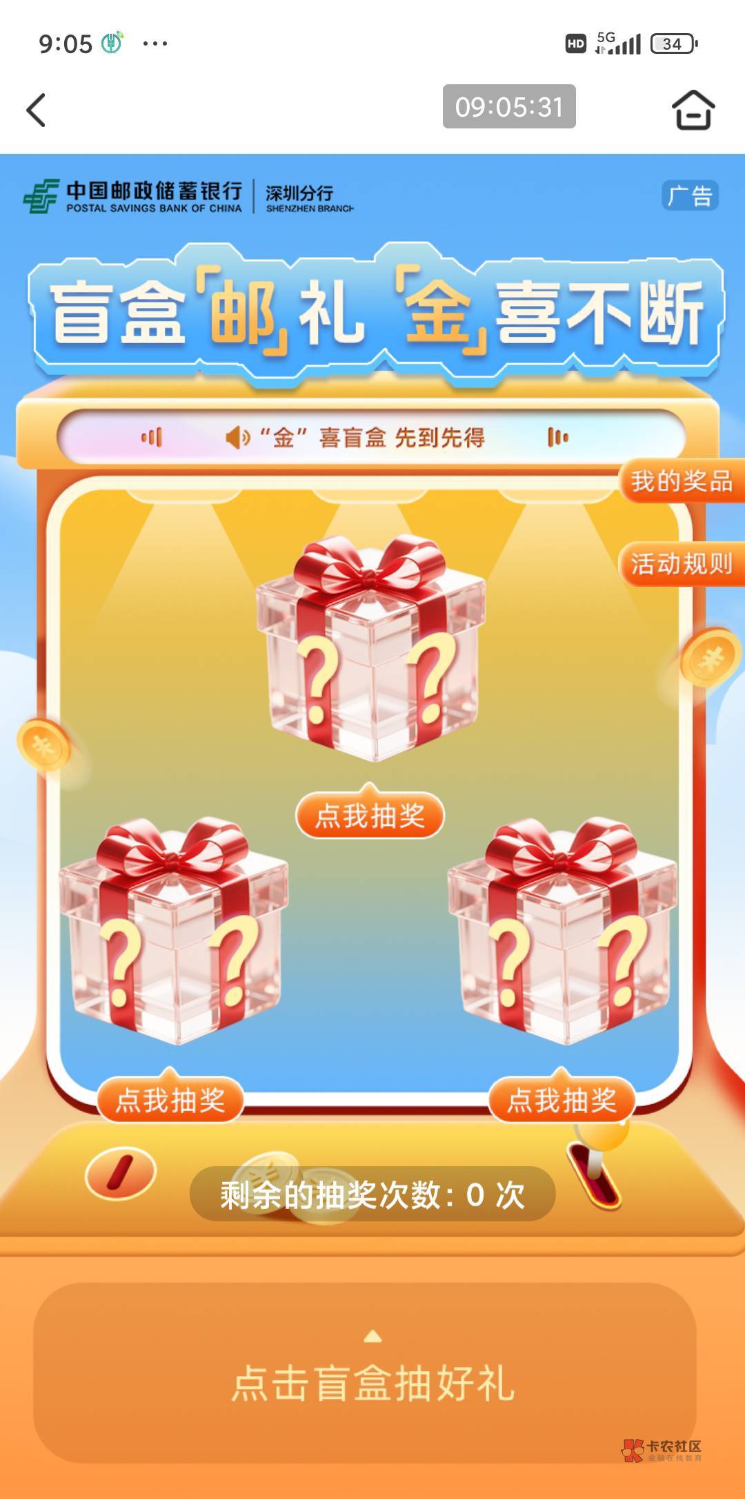 深圳邮储盲盒活动,链接扫码不用飞,立减金应该通用 https://mp.weixin.qq.com/s/X6Rw8u