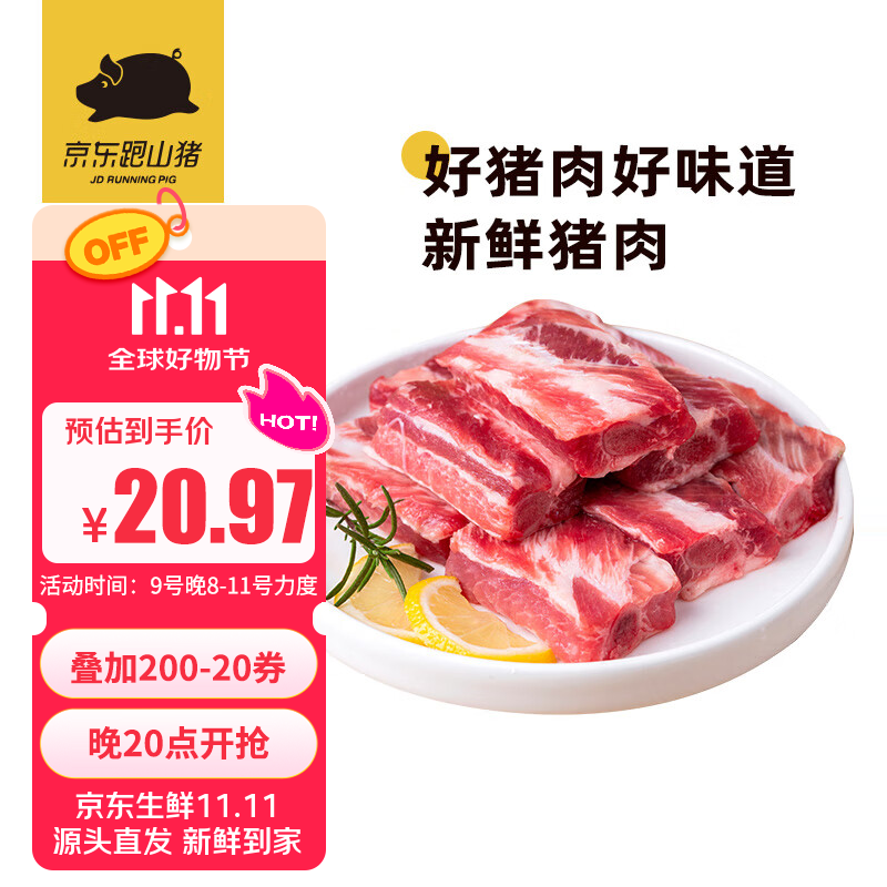 200-20京东跑山猪国产黑猪肋排800g,拍3件,凑后,每件18.09
