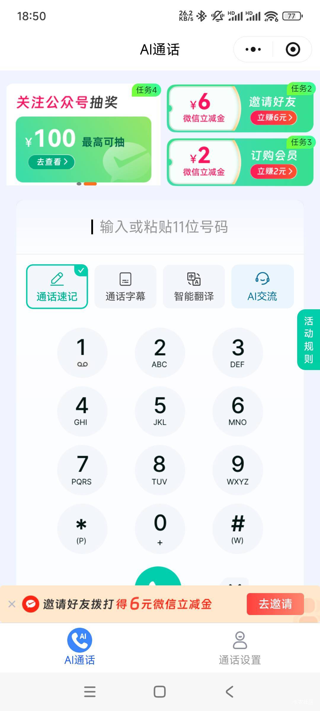 路径:微信搜索:5G新通话中国移动/左上角关注公众号抽奖/关注以后直接点击抽奖流行,祝大家好运,我抽到了1块
