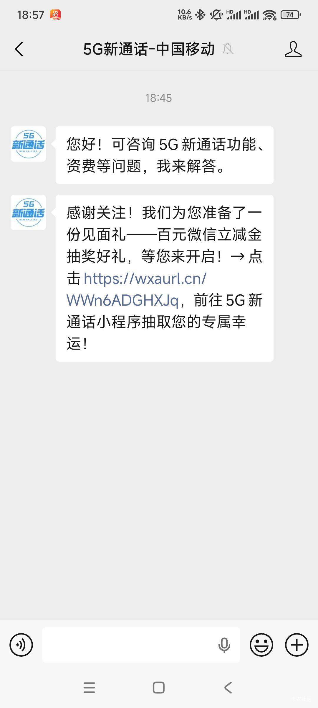 中国移动抽立减金活动路径:微信搜索:5G新通话中国移动/ ...