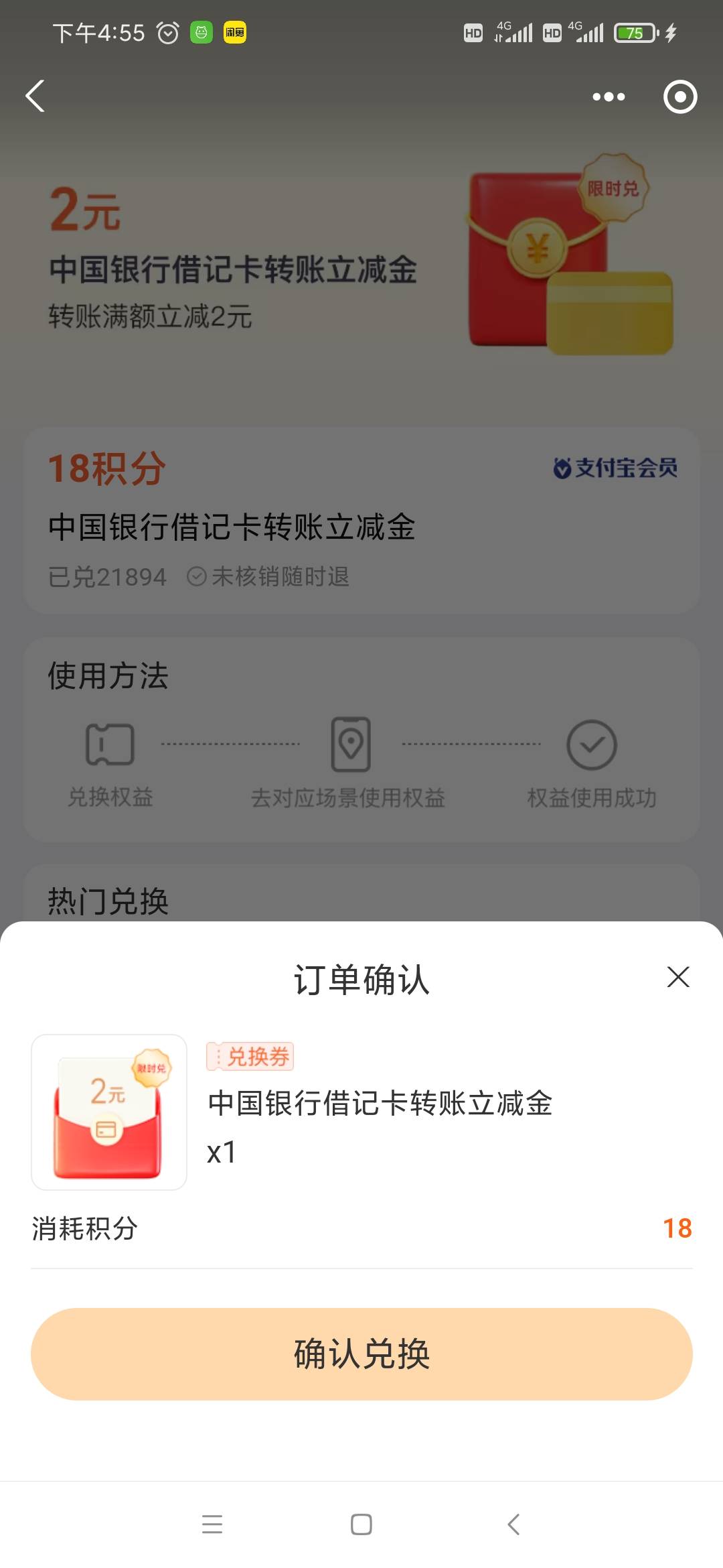 即付宝,积分,99兑中行2,兑完页面下方带出18积分兑2