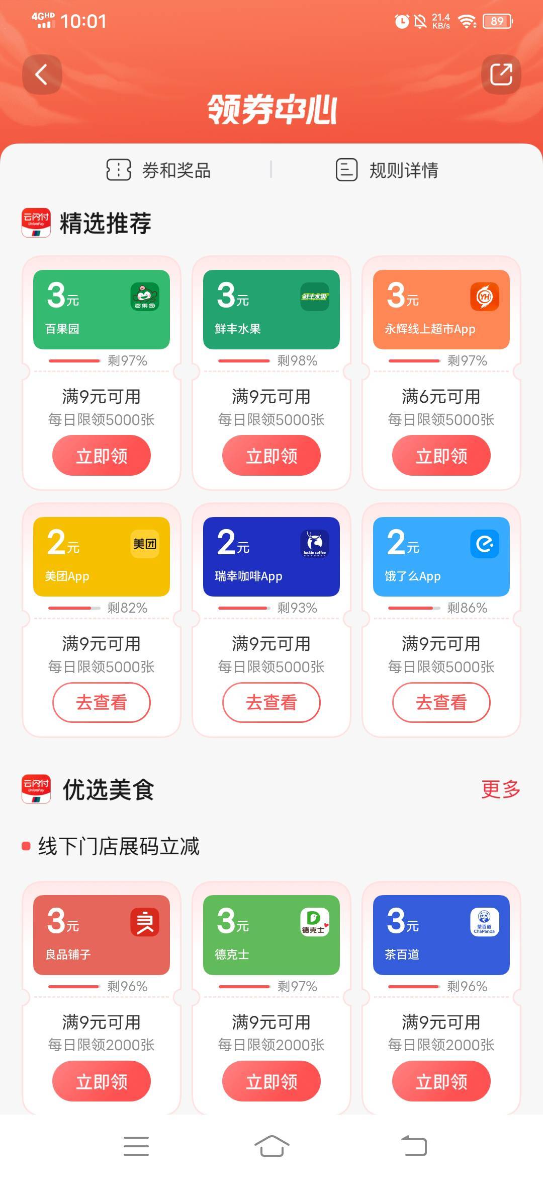 交行领券中心,更新了美团饿了吗2和美宜佳3