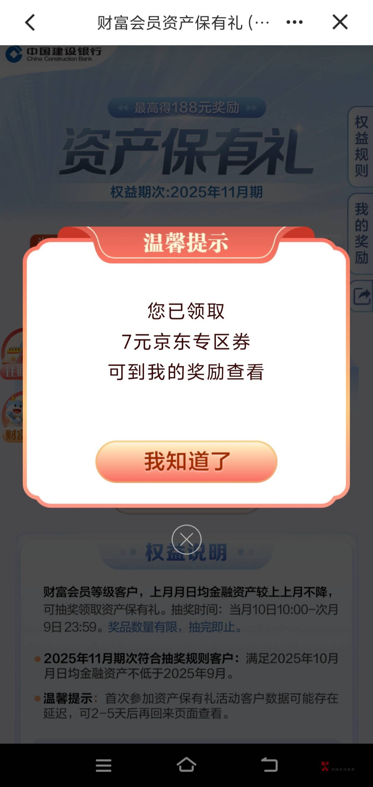 建行每月可以领取了,基本7京东券。叠加省钱卡的2张20-10,。3买30京东e卡 省钱月卡