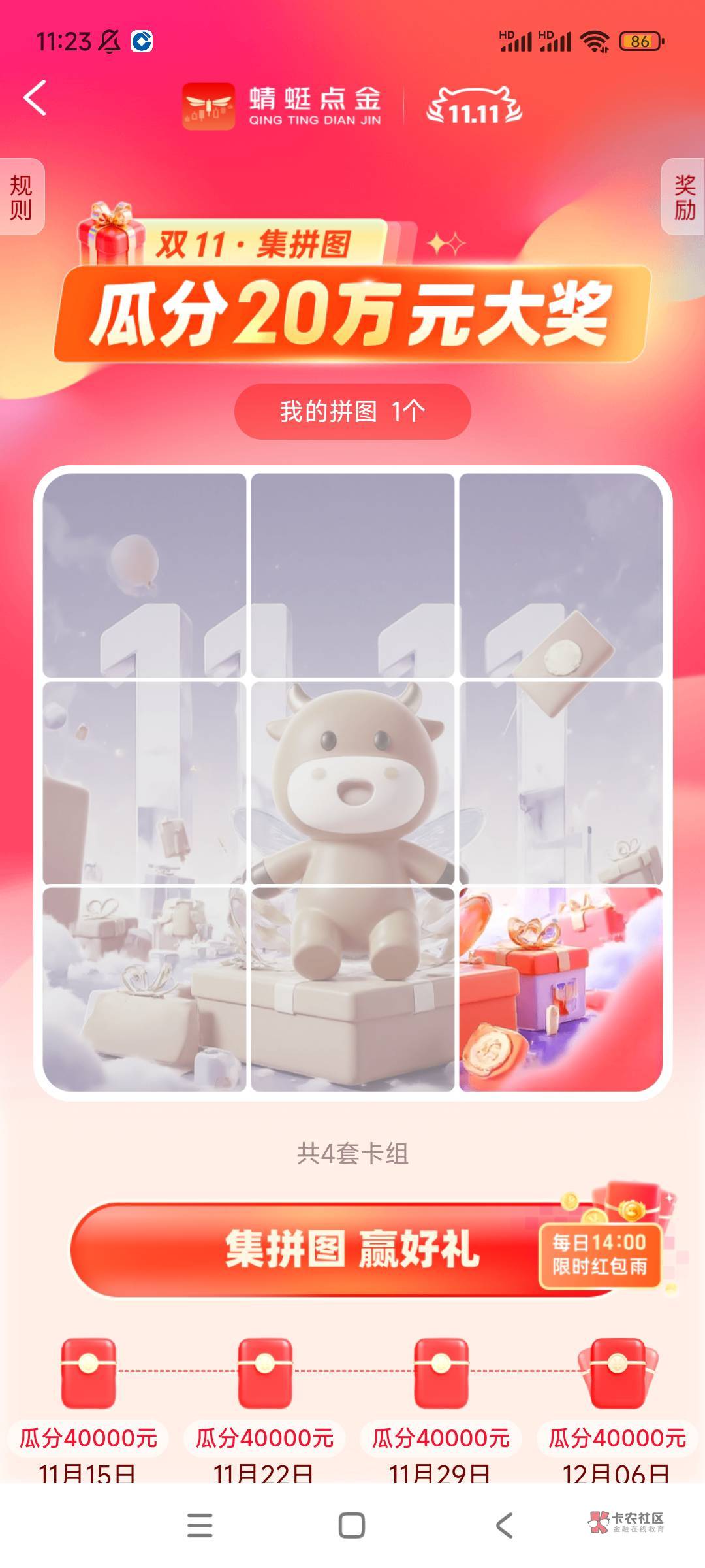 蜻蜓点金app,新的双十一活动,收集拼图,抽奖,做任务得红包,算是螺丝毛