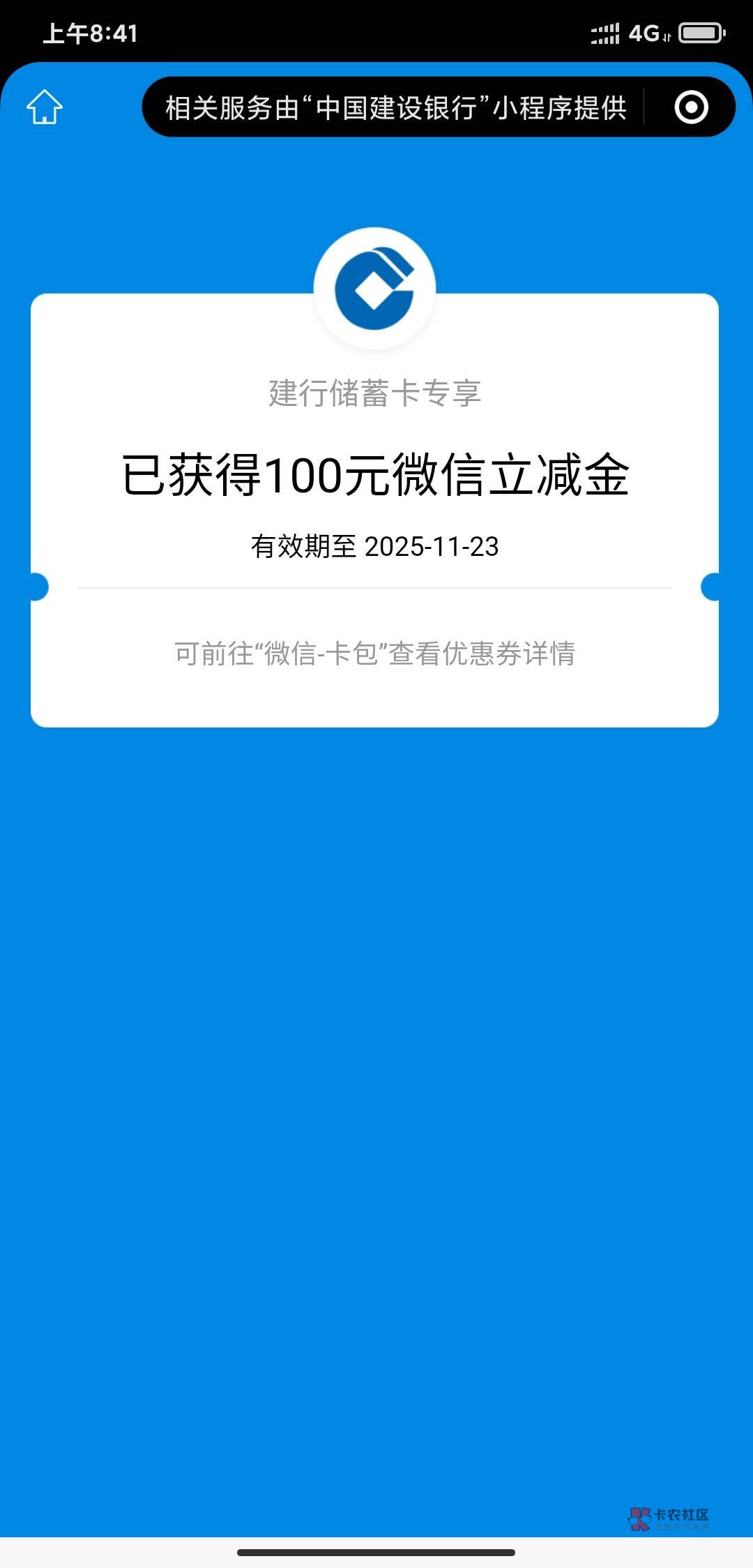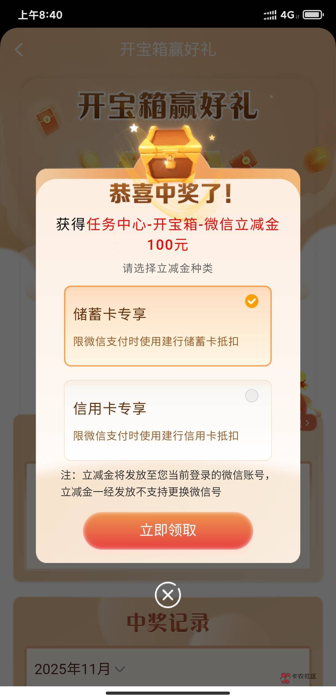 建行宝箱100立减金 中了 中了