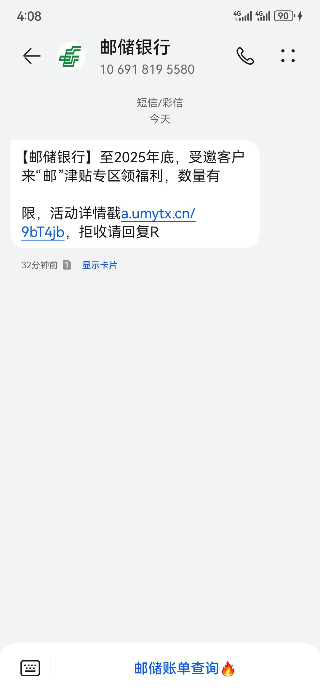 邮储,邮津贴。短信直达,链接无头。