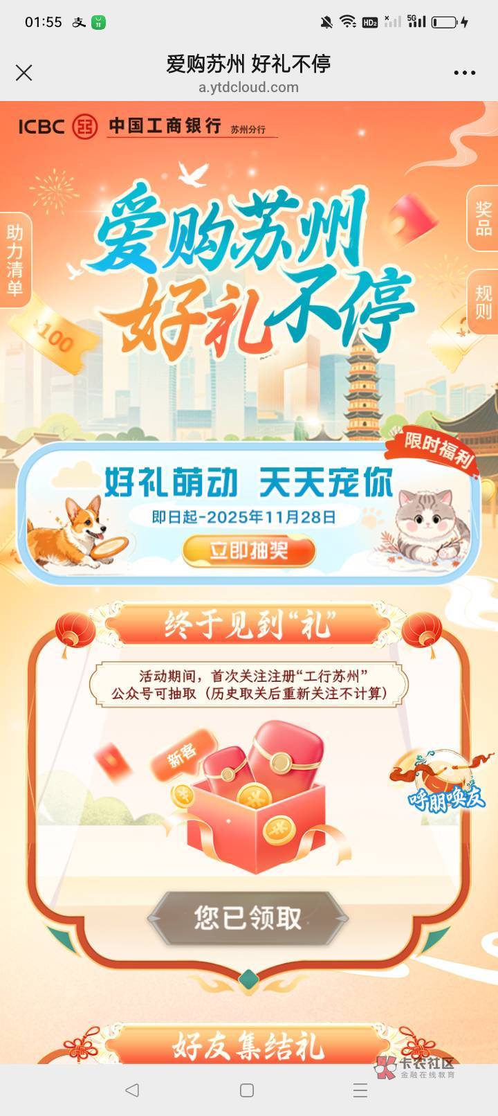 工行苏州,新关注的抽立减金。月月开好礼中了1但是限卡。下拉那个换算的两个抽奖中个