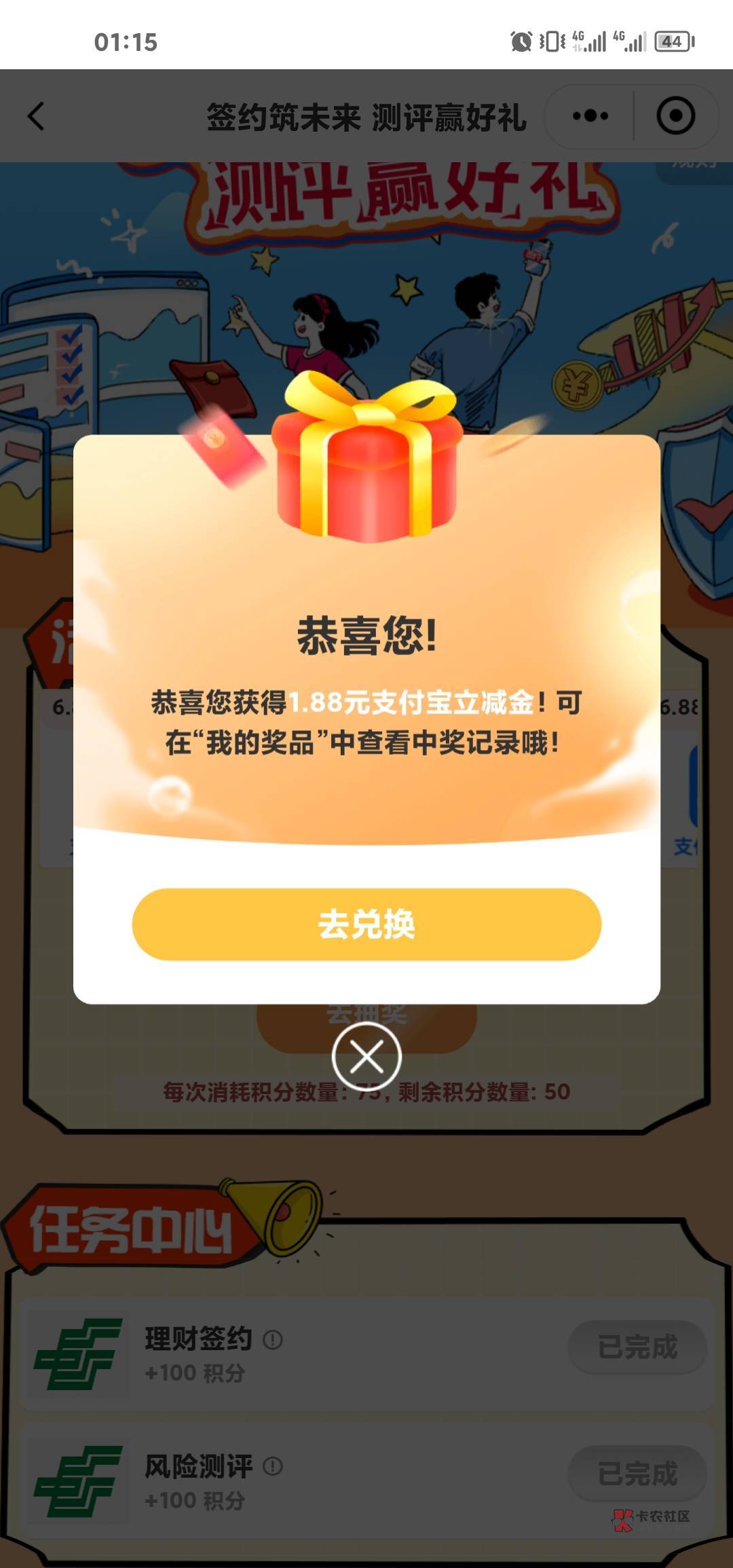 邮储活动,评测好礼任务抽2次机会,抽中1毛多