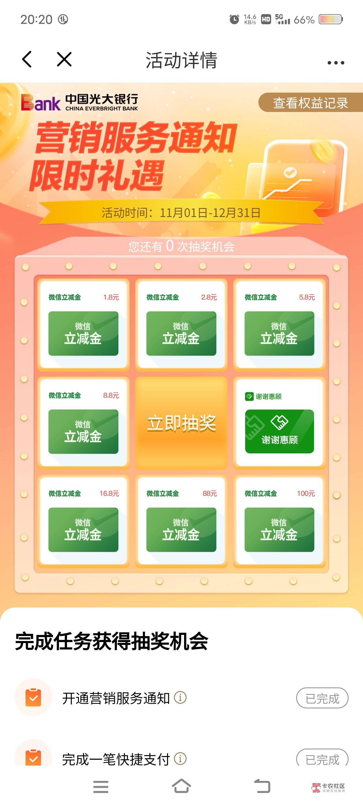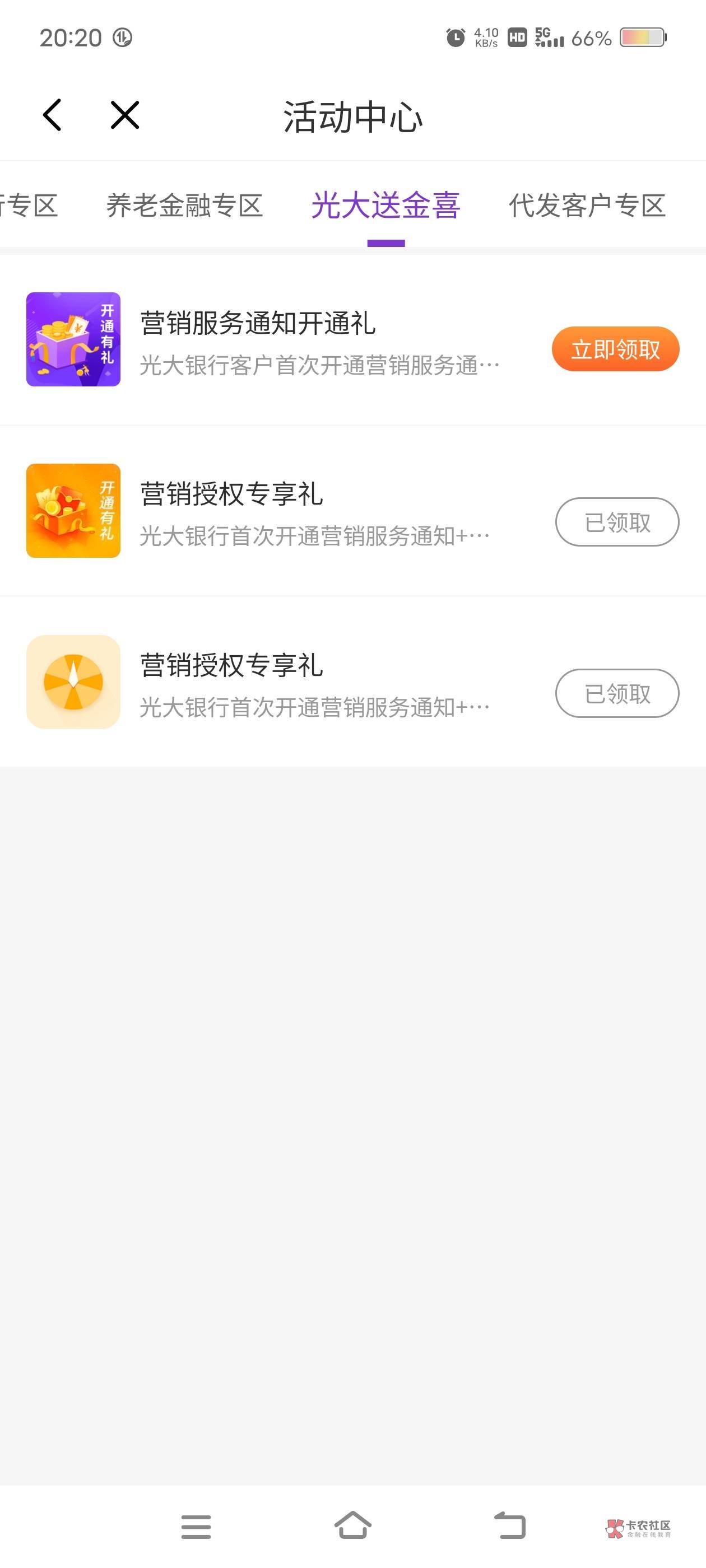 光大银行首页权益,再点到光大送惊喜营销授权专享礼,低保1.8好运的冲