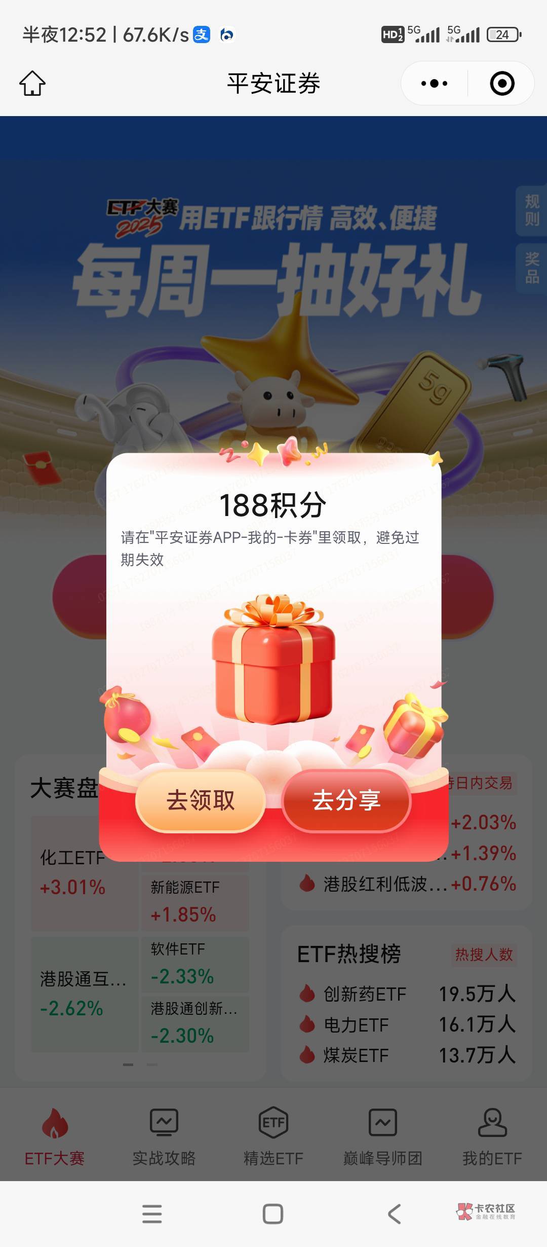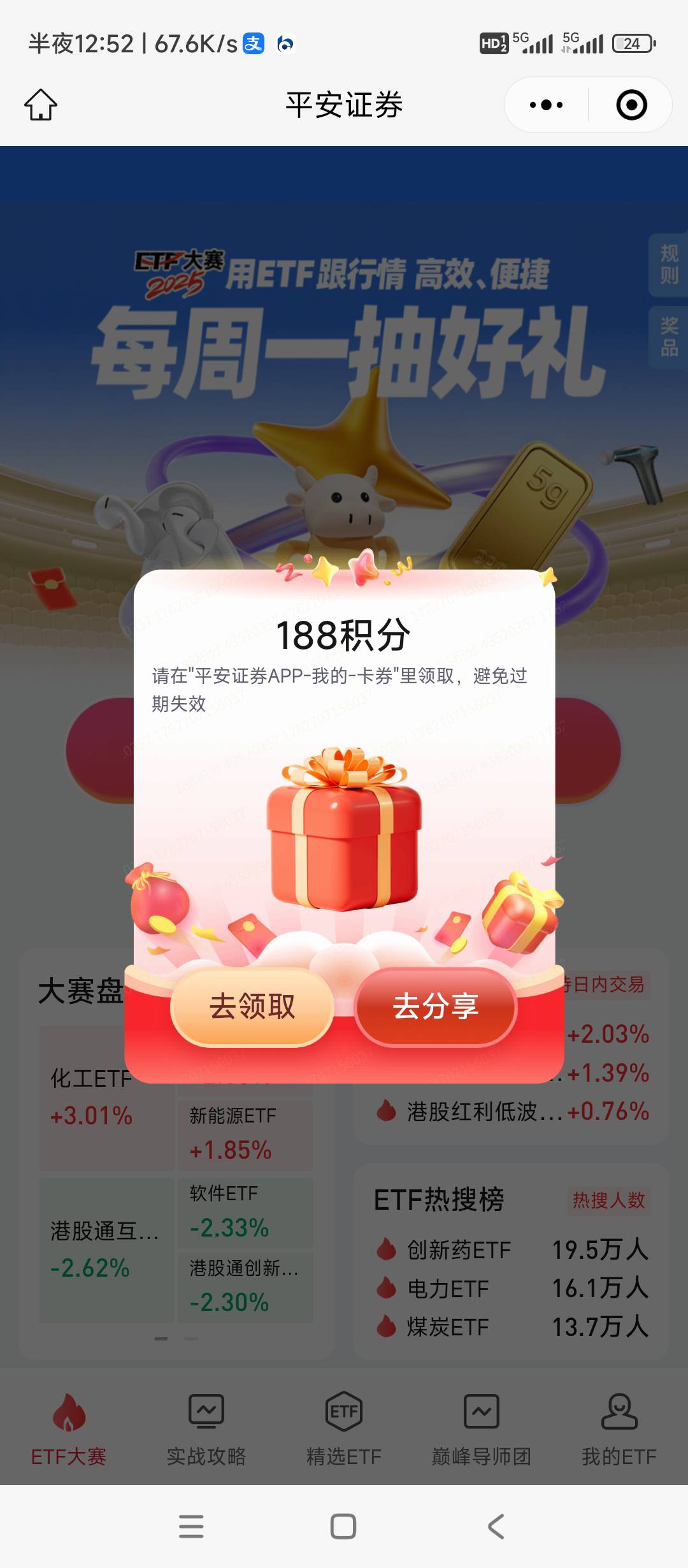 首发加精,别等几千个包了,平安证券公众号右下角etf大赛抽点积分攒着换立减金把