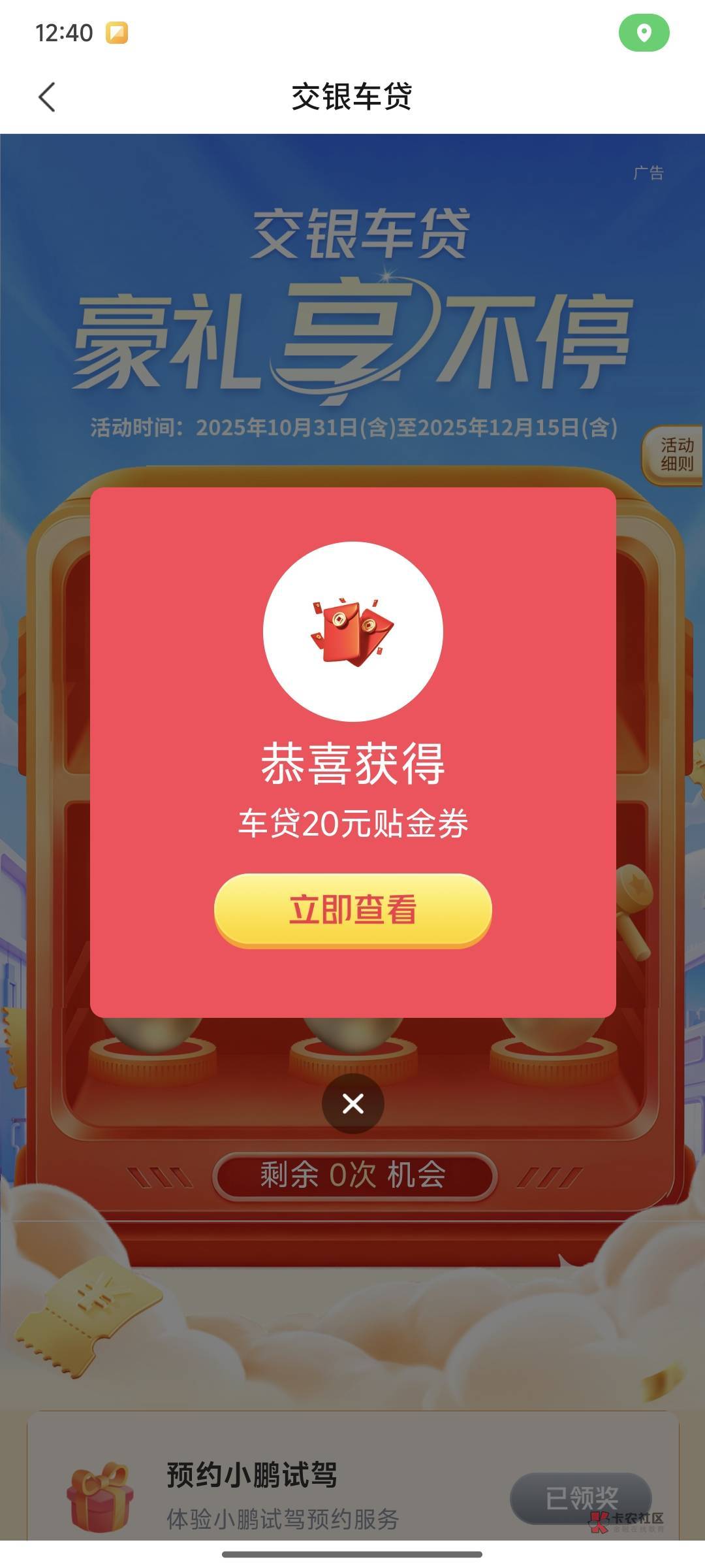 交行车贷抽奖还有