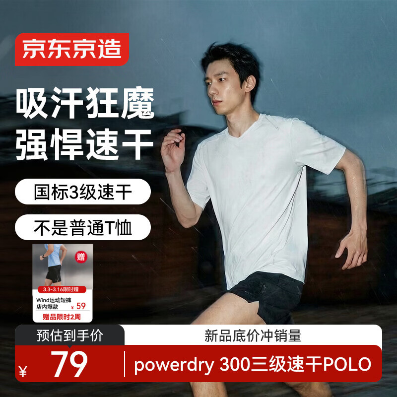 京东京造 户外速干男短袖T恤 79亓自营包邮,赠速干短裤 *好平反500