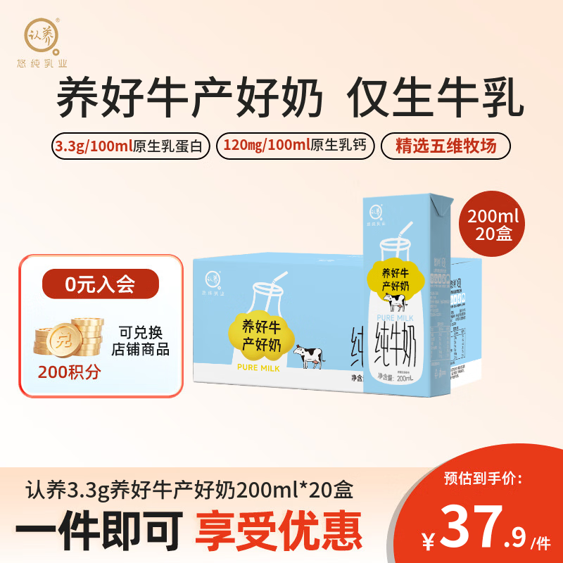【自营】认养 儿童纯牛奶20盒 37.8亓 云费,plus无限包邮 *原