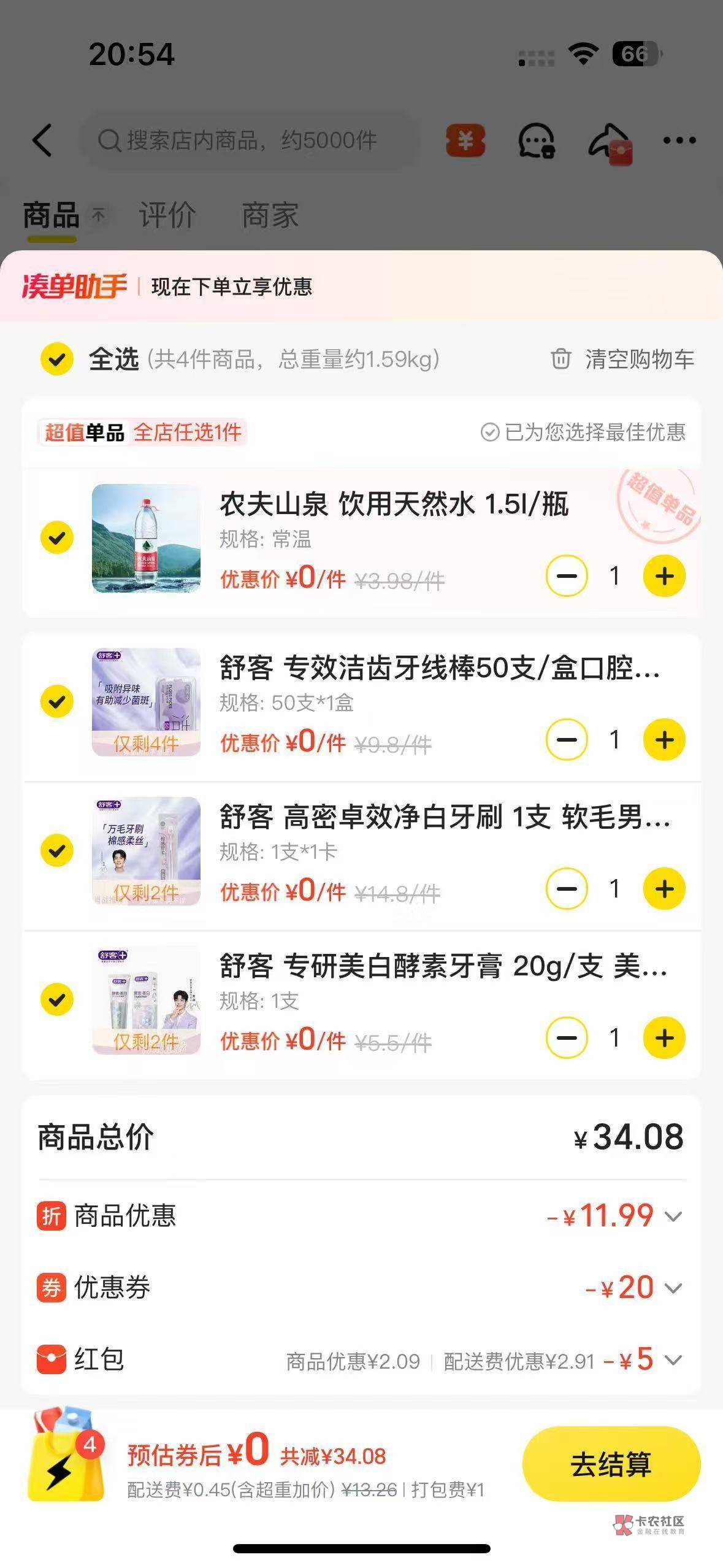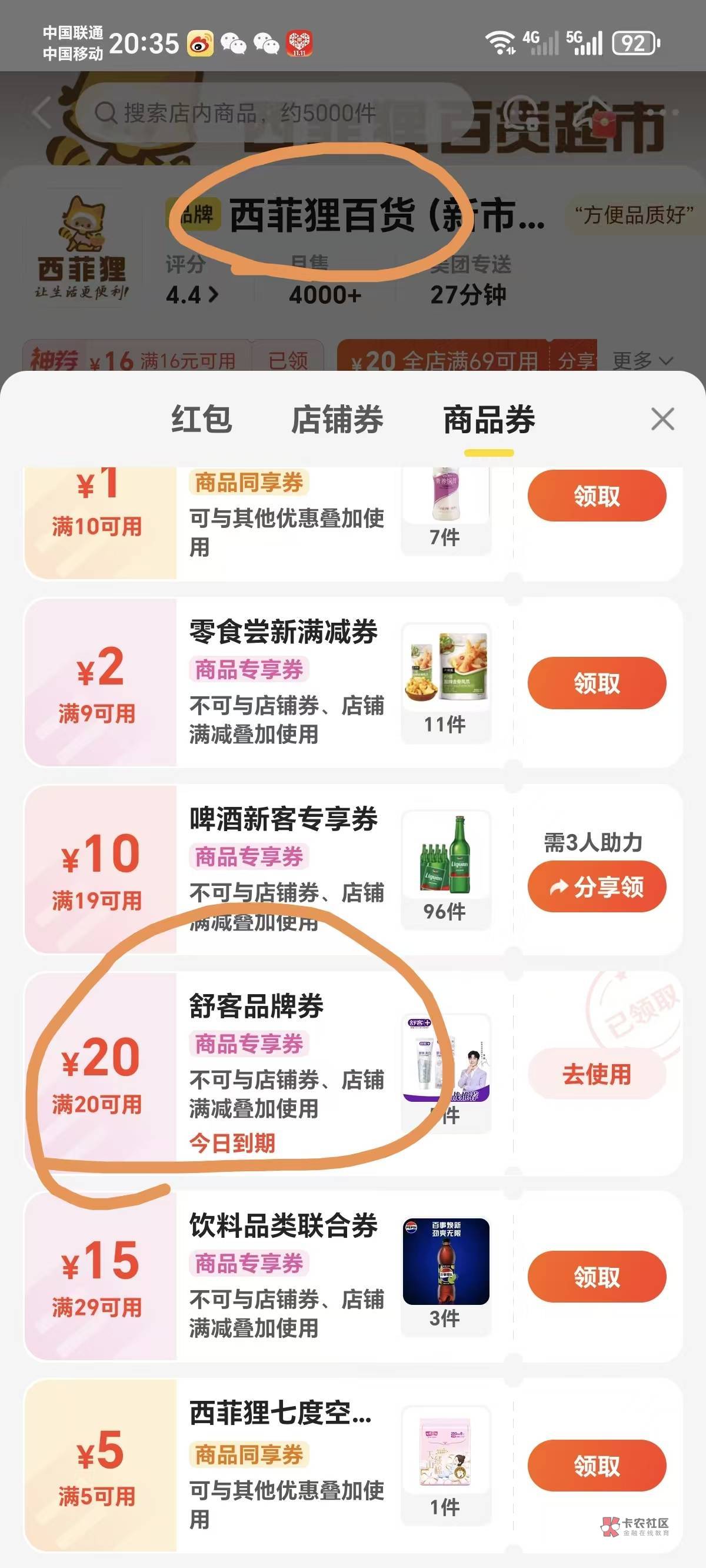 美团闪购搜索西菲狸百货 进去里面领舒克20-20券 然后自己凑商品 叠加神券