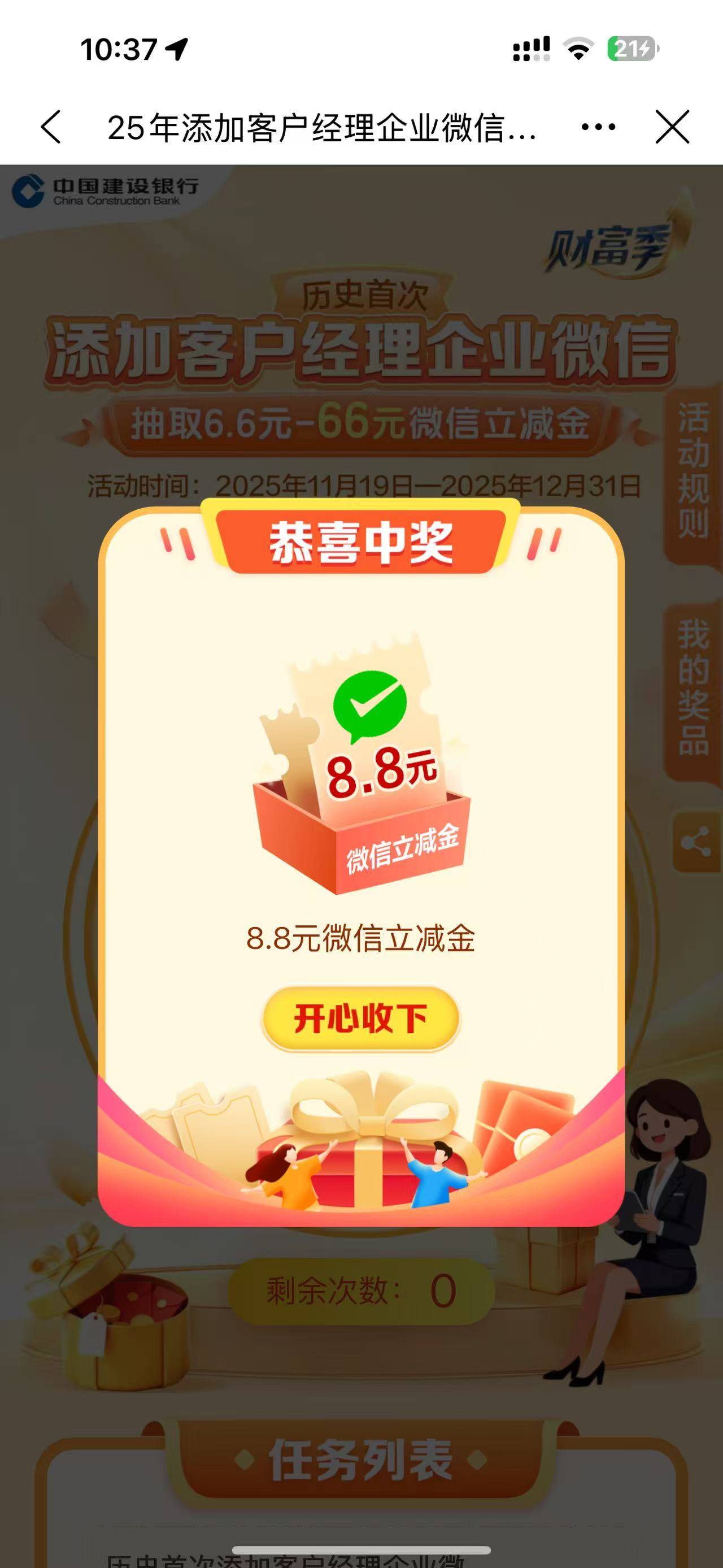 建行生活亲测有效8.8 速冲 最高66删除以前加的客服重新加个新的