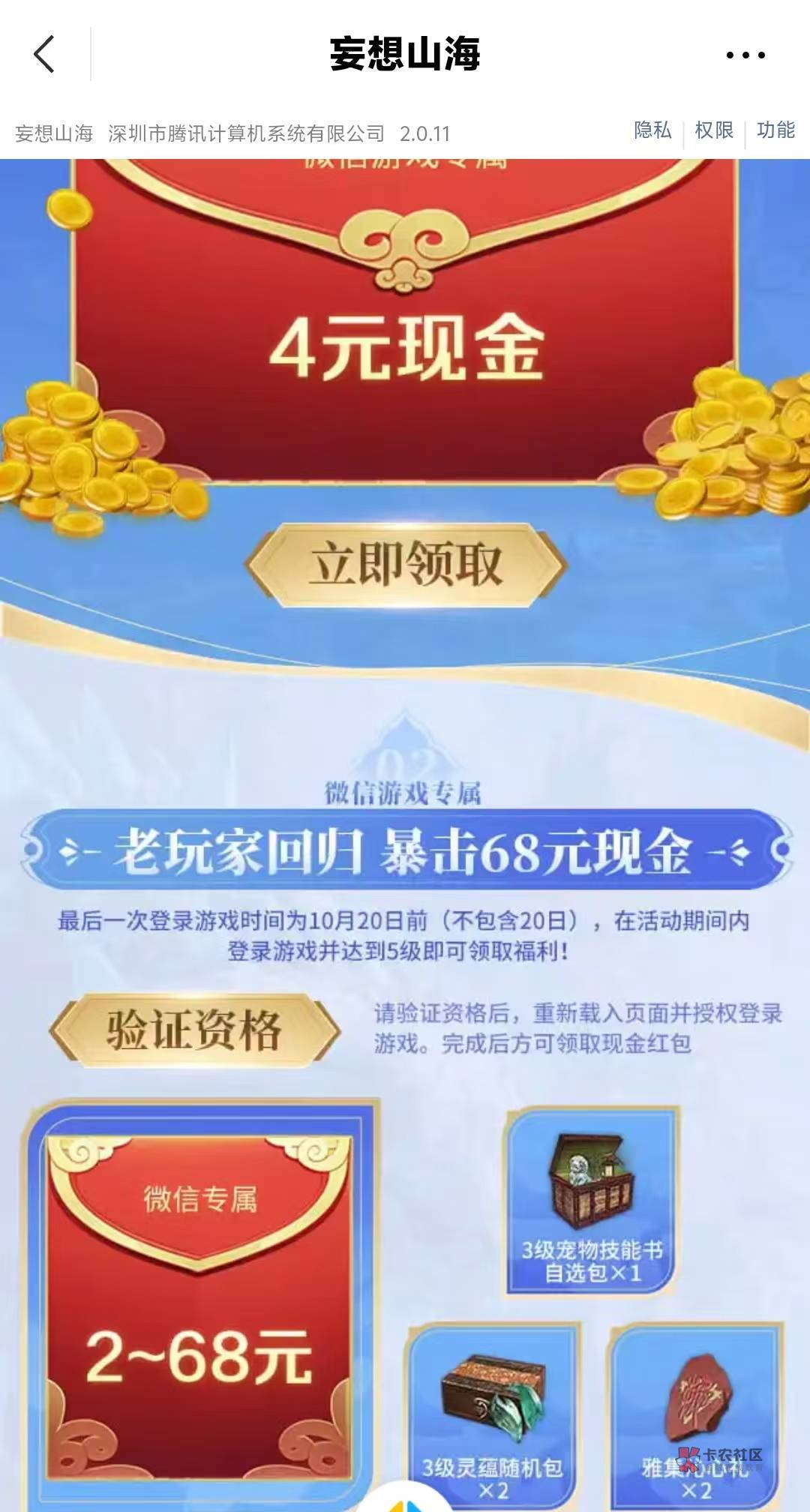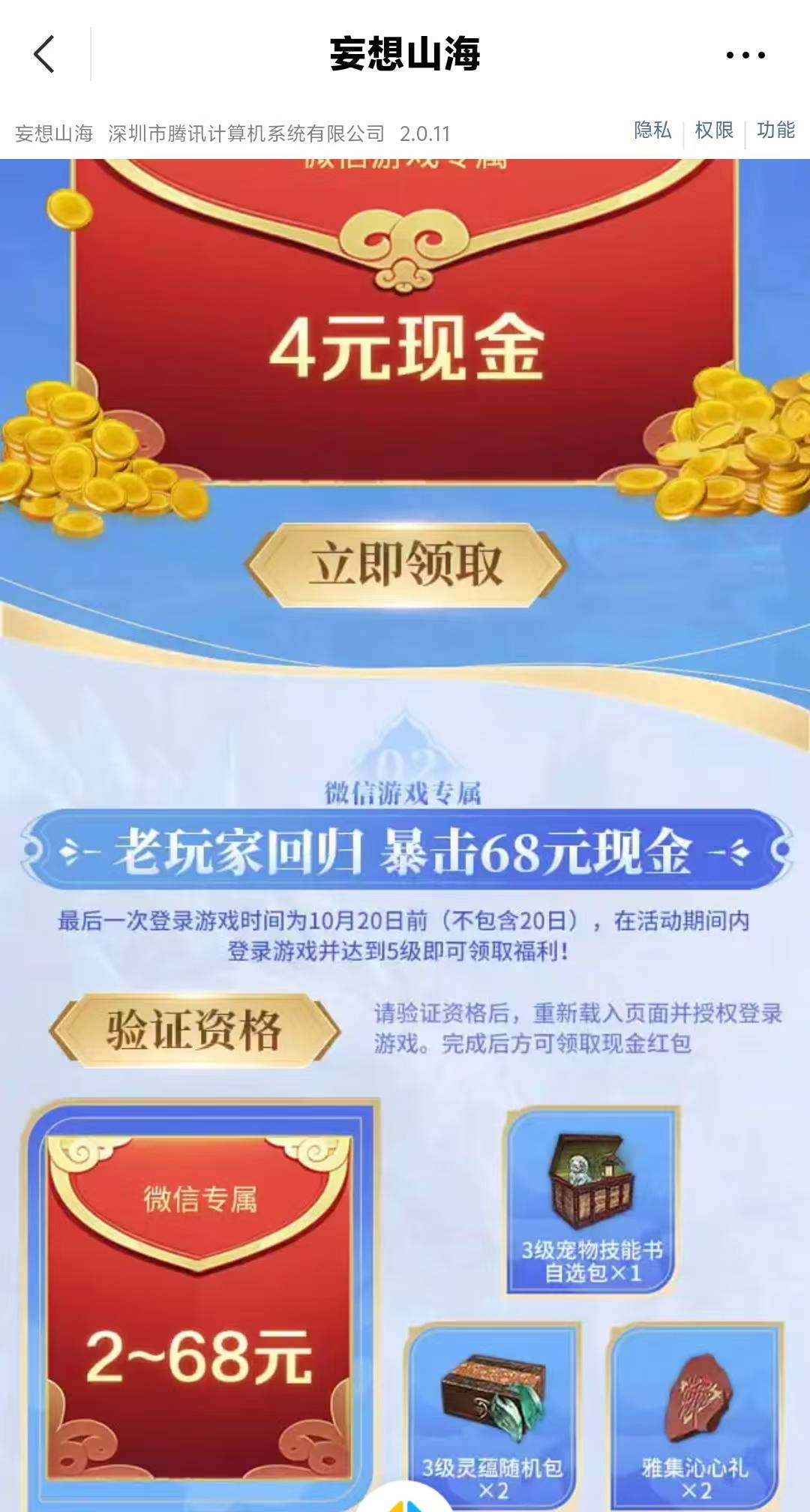 腾讯游戏妄想山海回归和注册都有包