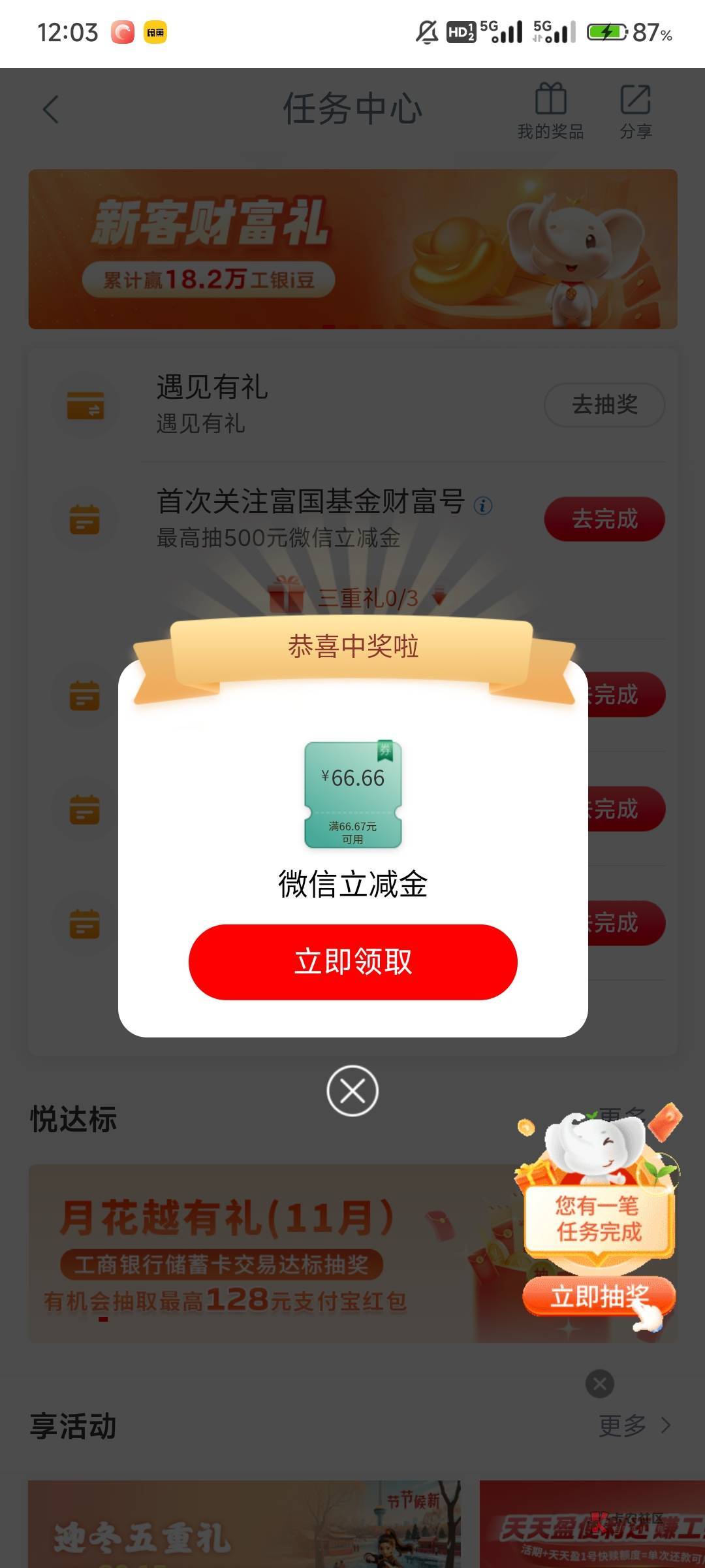 工行前两天飞的贵州,遇见有礼转账抽,刚中66