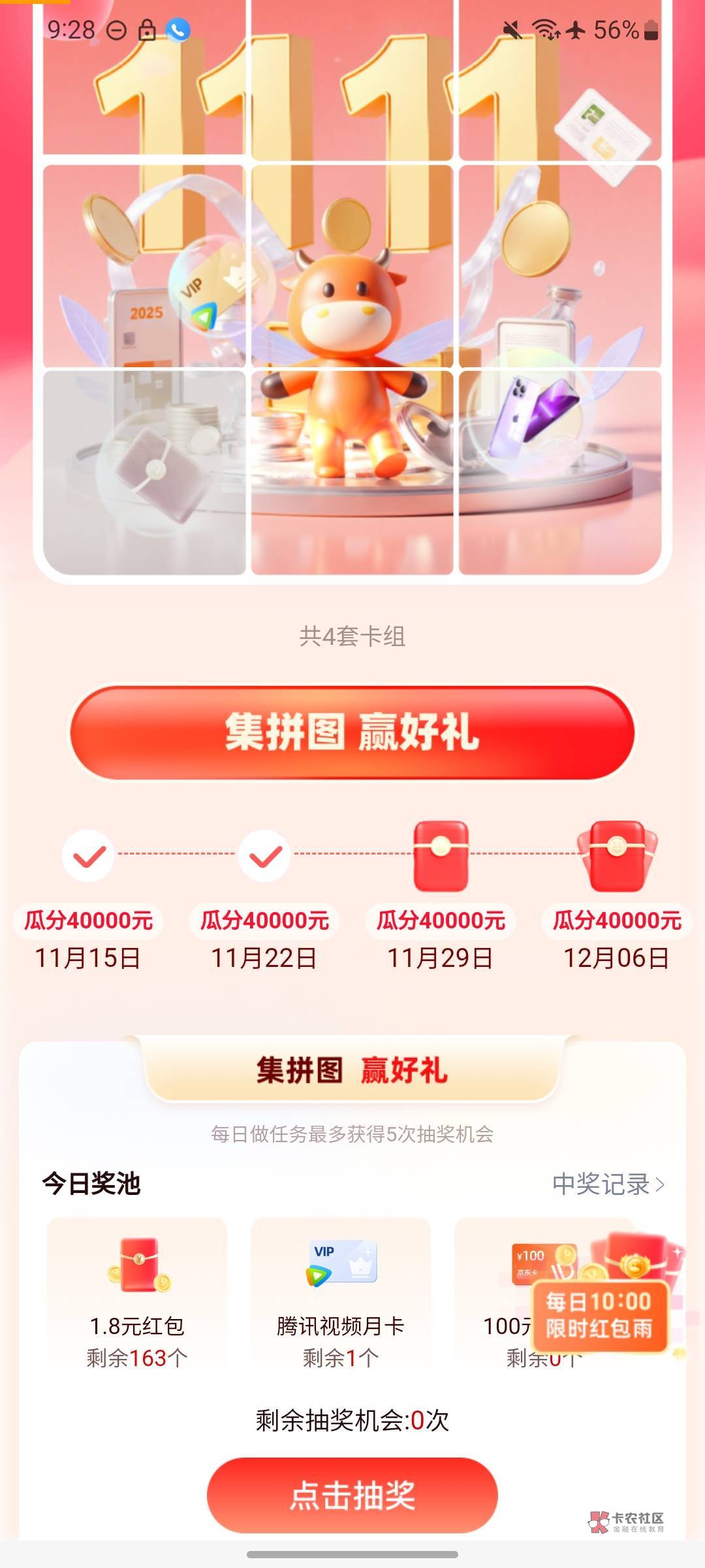 云缴.费 有随机立剪 先到先得 每日7k份名额 11.30截 有需如图看 50减0.8~28.8亓 期间内最高?3次