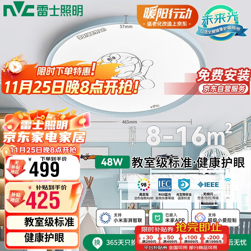 雷士照明 (NVC)LED未来光哆啦A梦护眼吸顶无蓝光危害RA98-蓝48W包安装,國补后209
