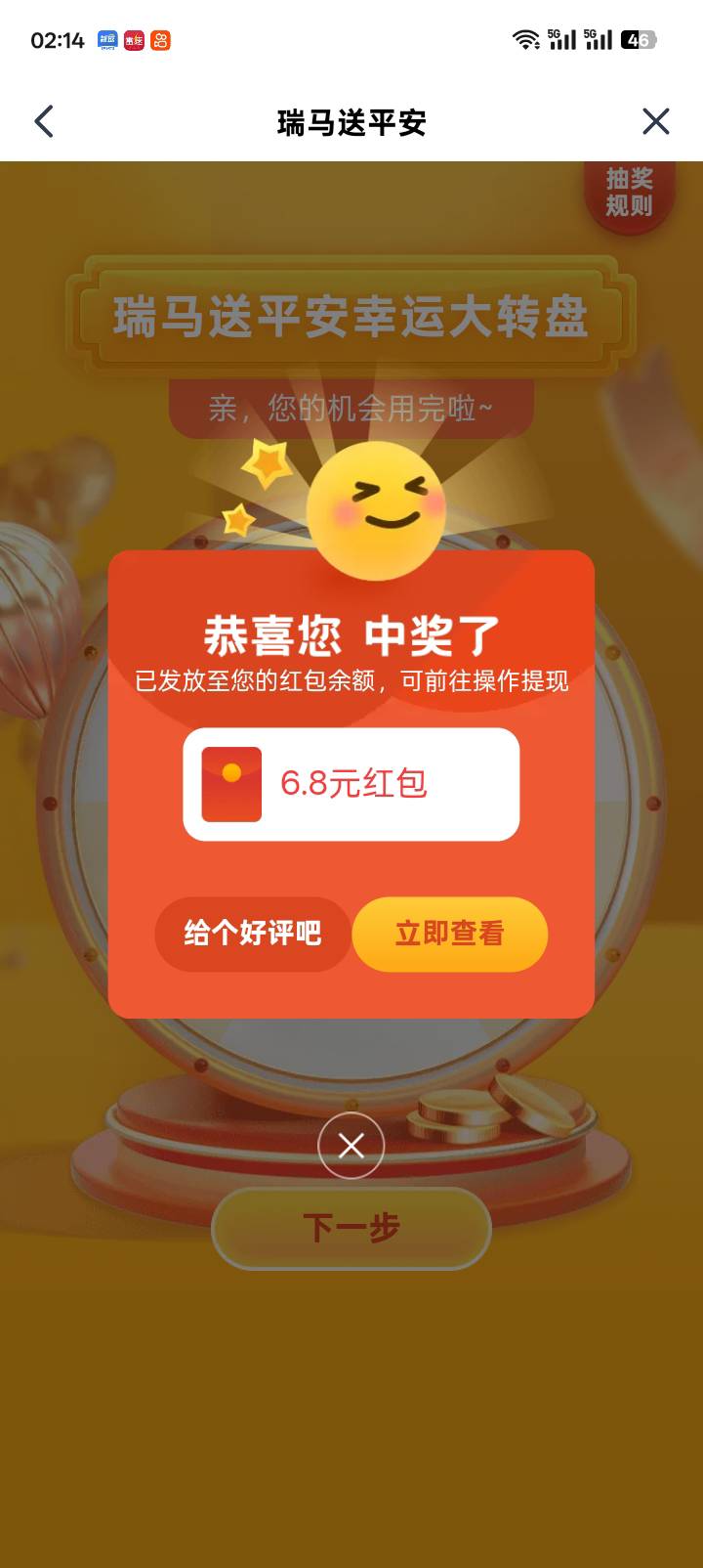 睡前试了一下,居然多多有水,可以点亮。关键是下面的春节加补福袋第1个抽中了入账1块8毛8。大家也试试手气,没准儿就有了
