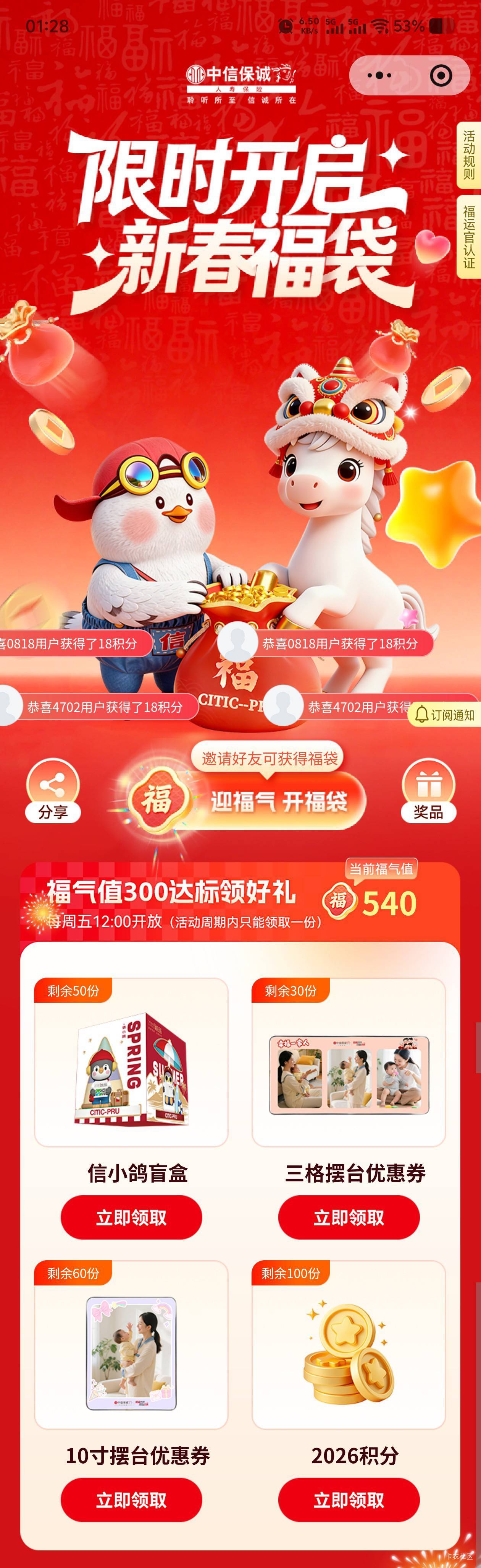 中信保诚人寿小程序,除夕到初二每天7个福袋,懂得都懂 ...