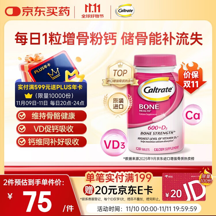 钙尔奇海外 碳酸钙片120粒,买1件,折后单件23.5
