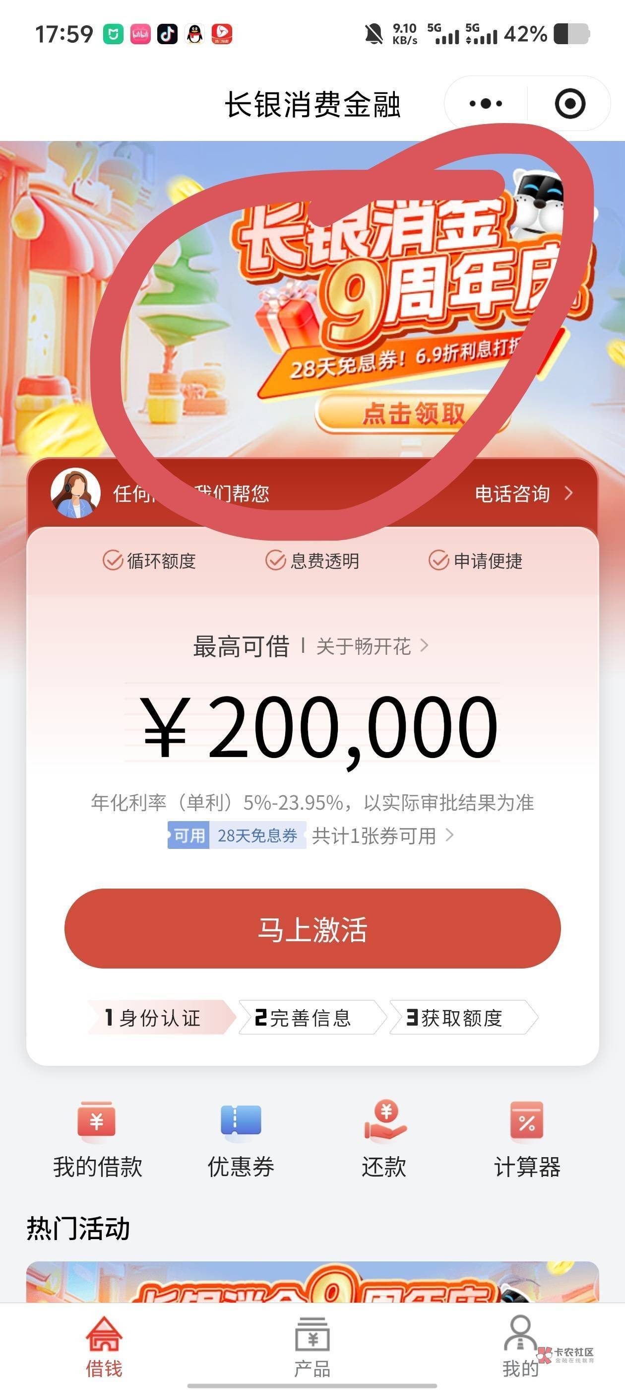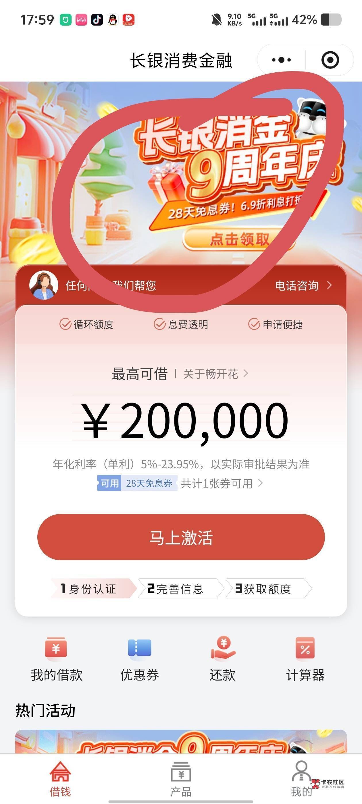 长银金融消费9周年一v19,多v多领,先用大号分享给小号,小号先去小程序登录登录好再