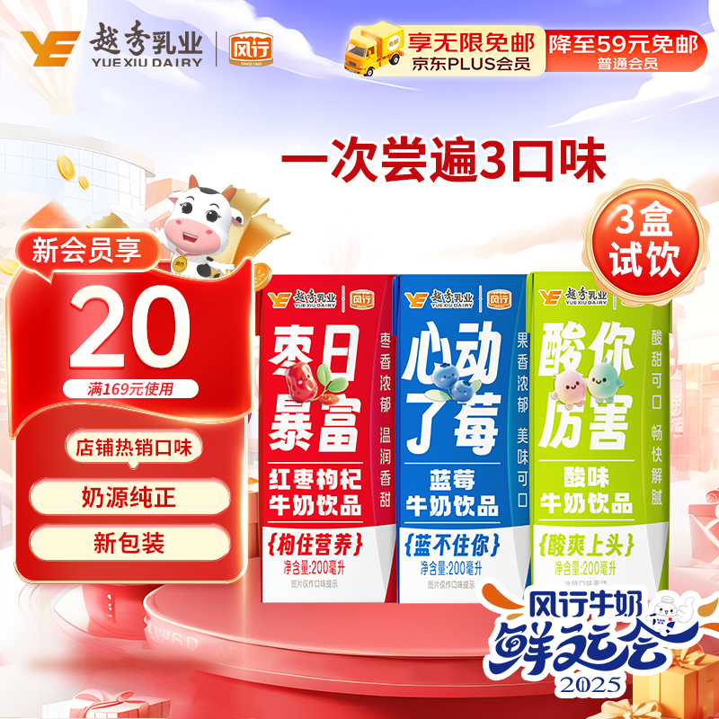 入会 风行牛奶 红枣 蓝莓 酸味牛奶饮品 200ml*3盒 5.9yuan