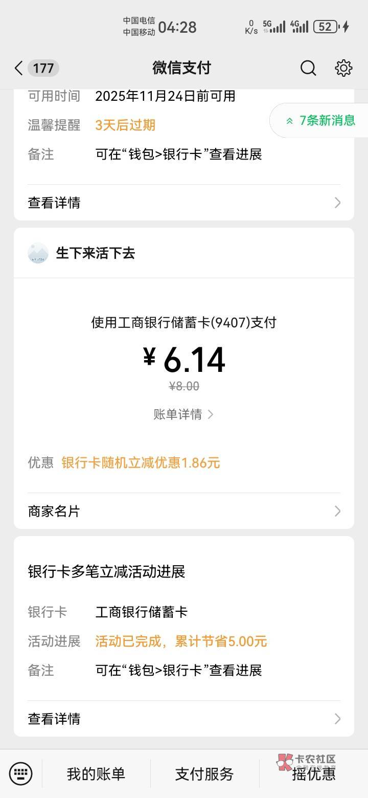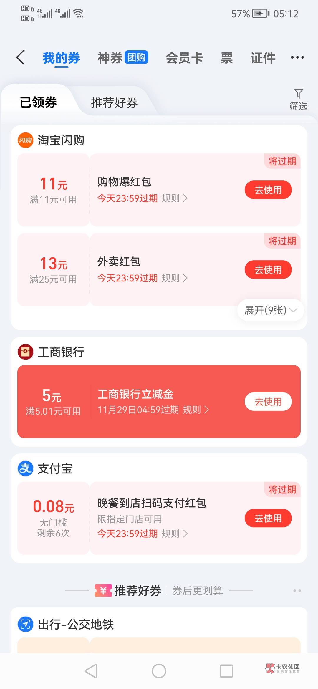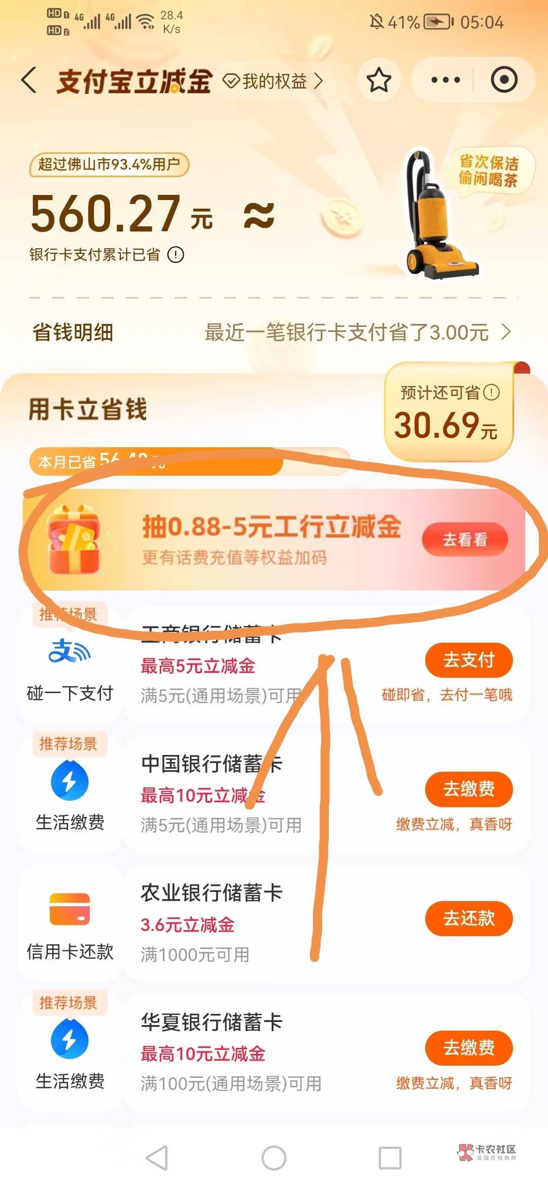 支付宝工行5立减通用 不知道是不是特邀。 路径 支付宝—我的—yhk 如图 通用的柚子直
