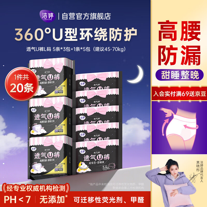 洁婷透气U裤安睡裤20条 拍2件凑后50.8亓 含赠共50条 折1