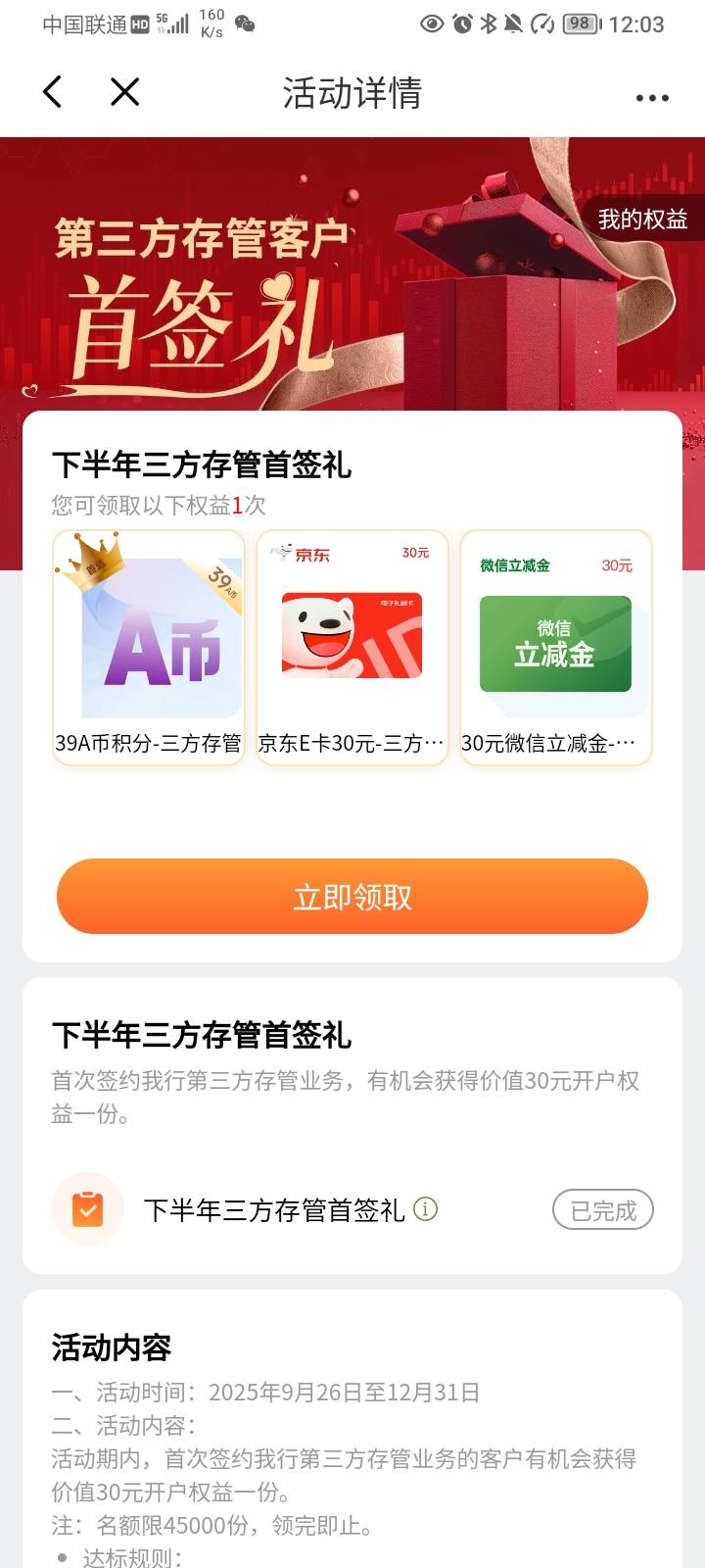 光大银行三方存管可以领了,上个月月底改的。