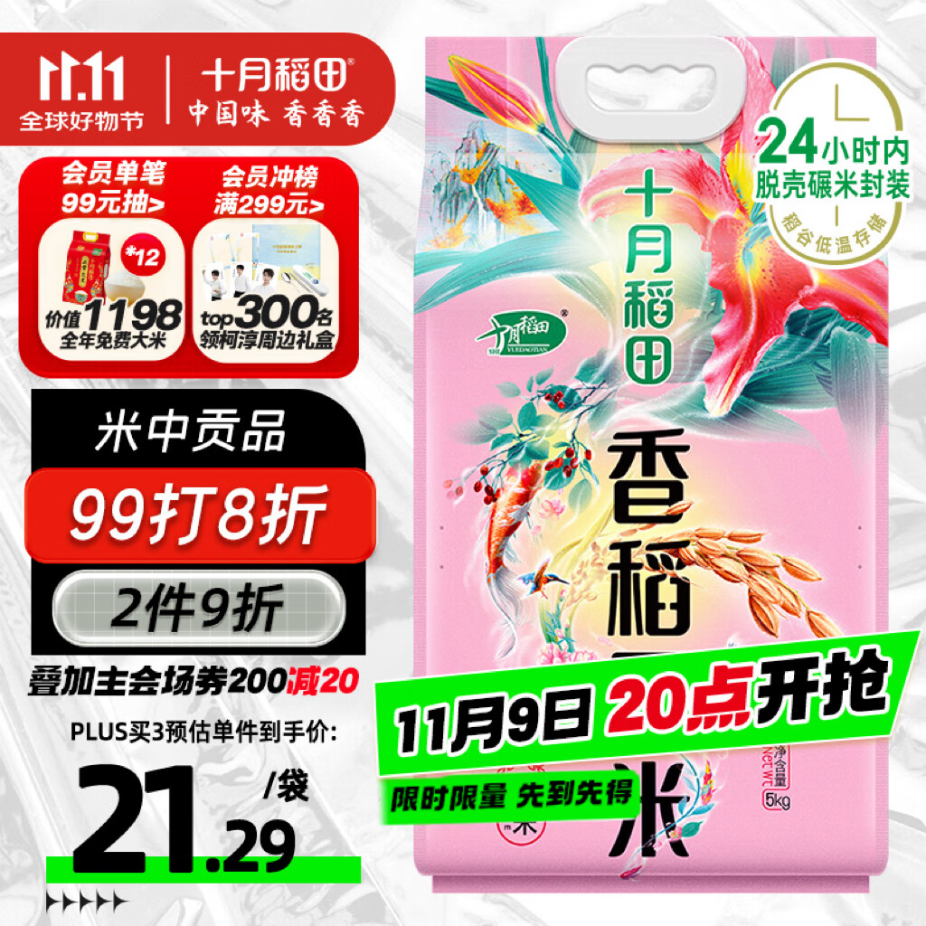 用111-11 十月稻田 香稻贡米 东北大米5kg 拍3件,每件16.86