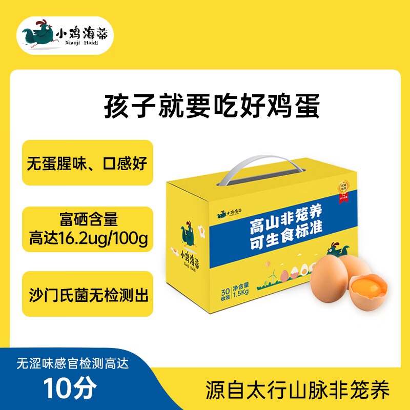 概率砸5券 小鸡海蒂太行山可生食标准鲜鸡蛋礼盒1500g30枚,凑后7.7
