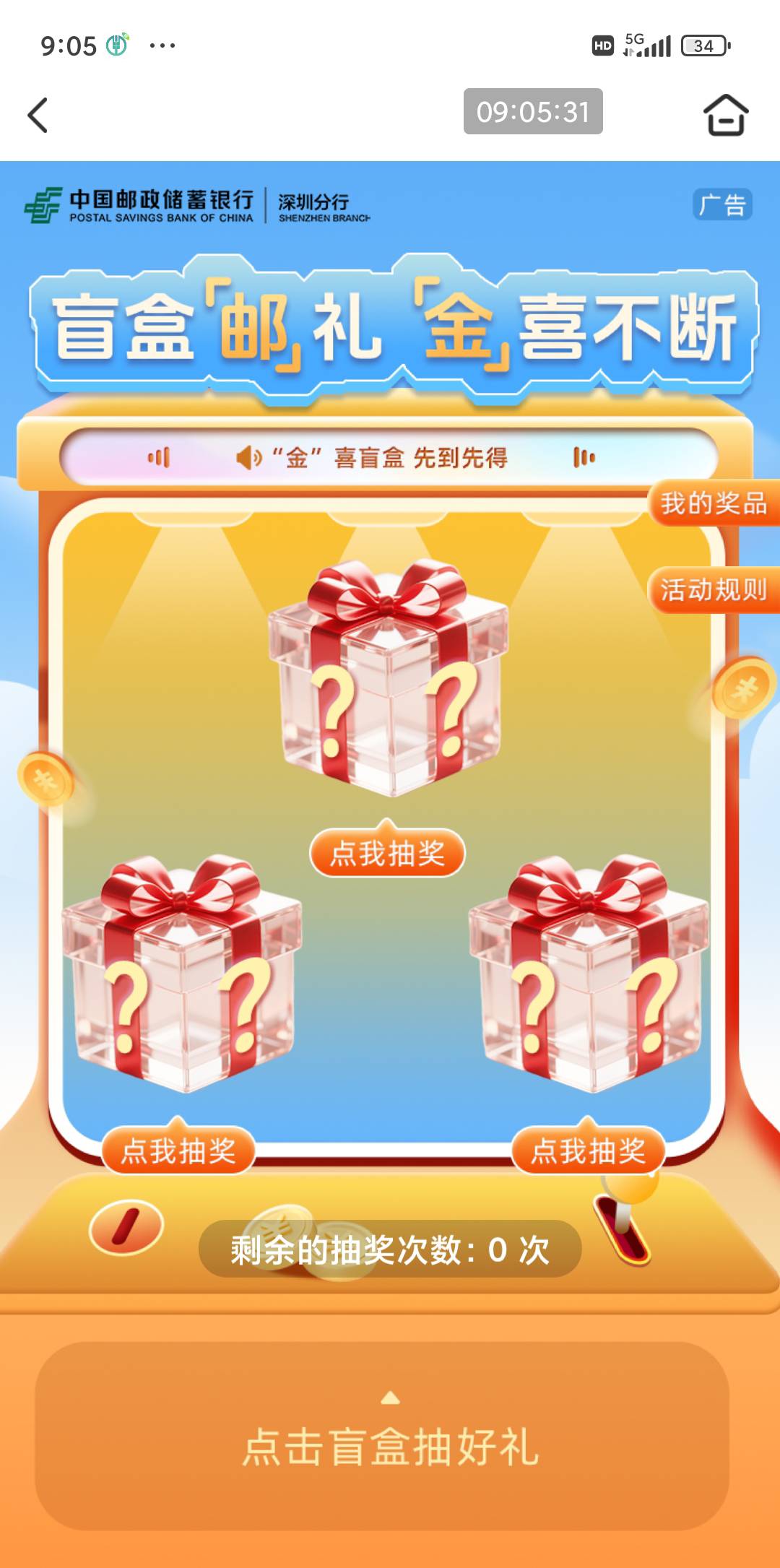 深圳邮储盲盒活动,链接扫码不用飞,立减金应该通用 https://mp.weixin.qq.com/s/X6Rw8u