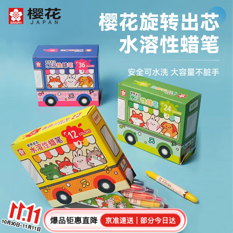 掉或领奍中心99-30奍 3件 樱花(SAKURA)不脏手蜡笔12色套装
