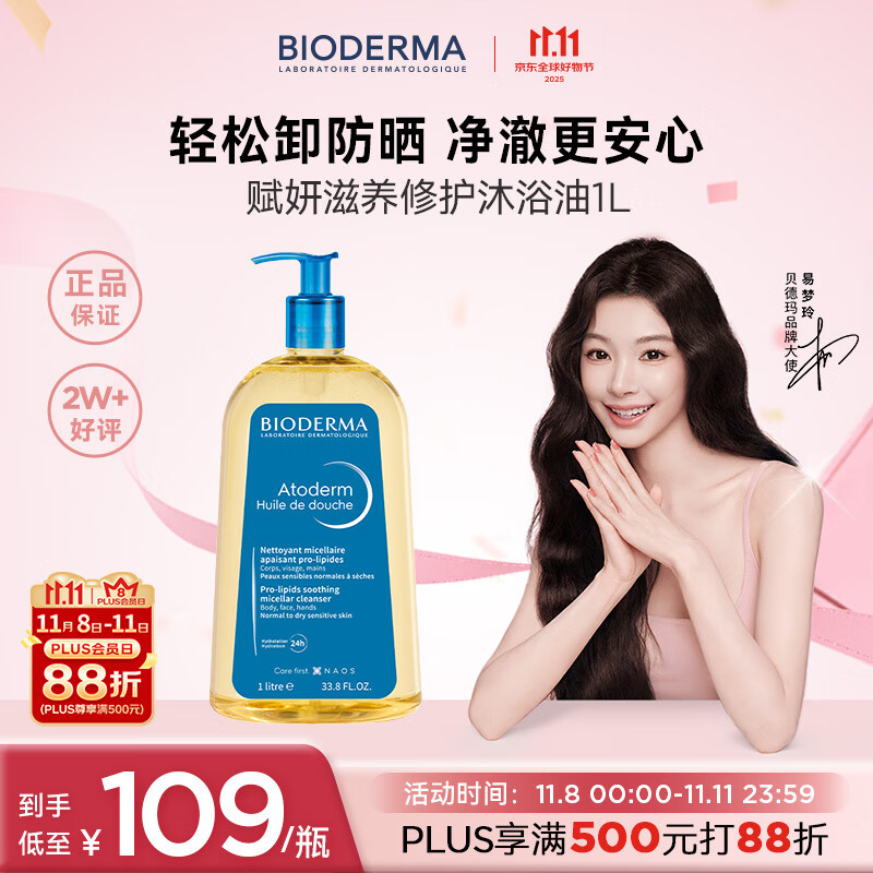 贝德玛(BIODERMA)赋妍滋养沐浴油1L,zbj领99-20奍,弹8.6折立减,凑300-50满减后,39.3