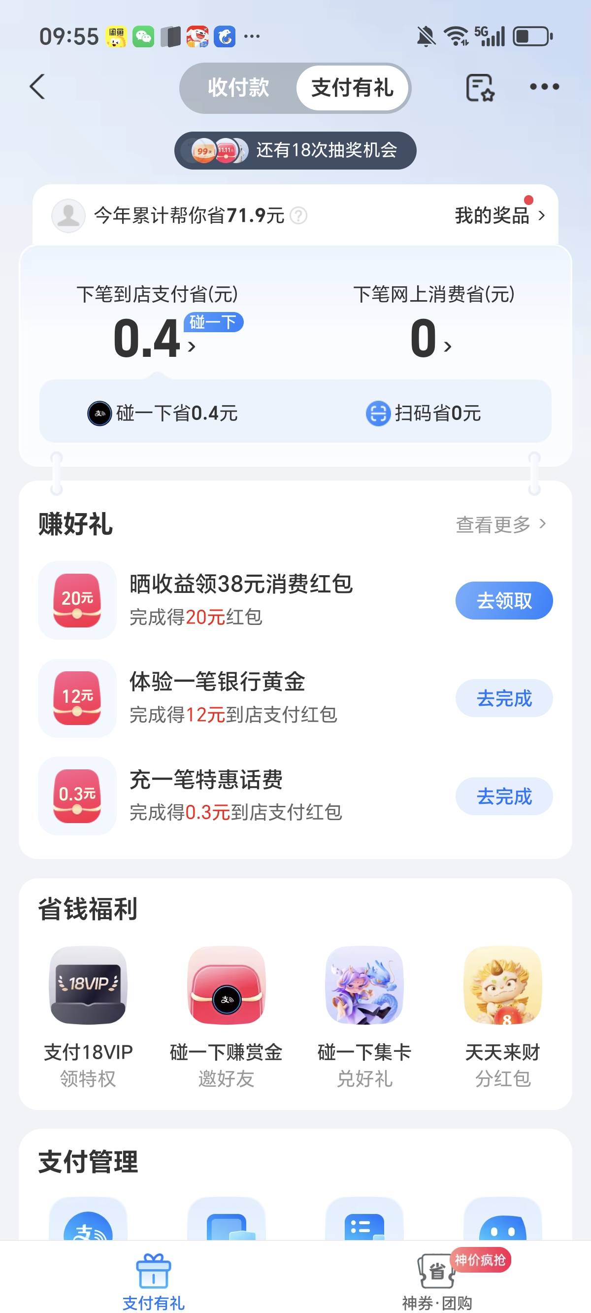 ,支付有礼20,晒收益38