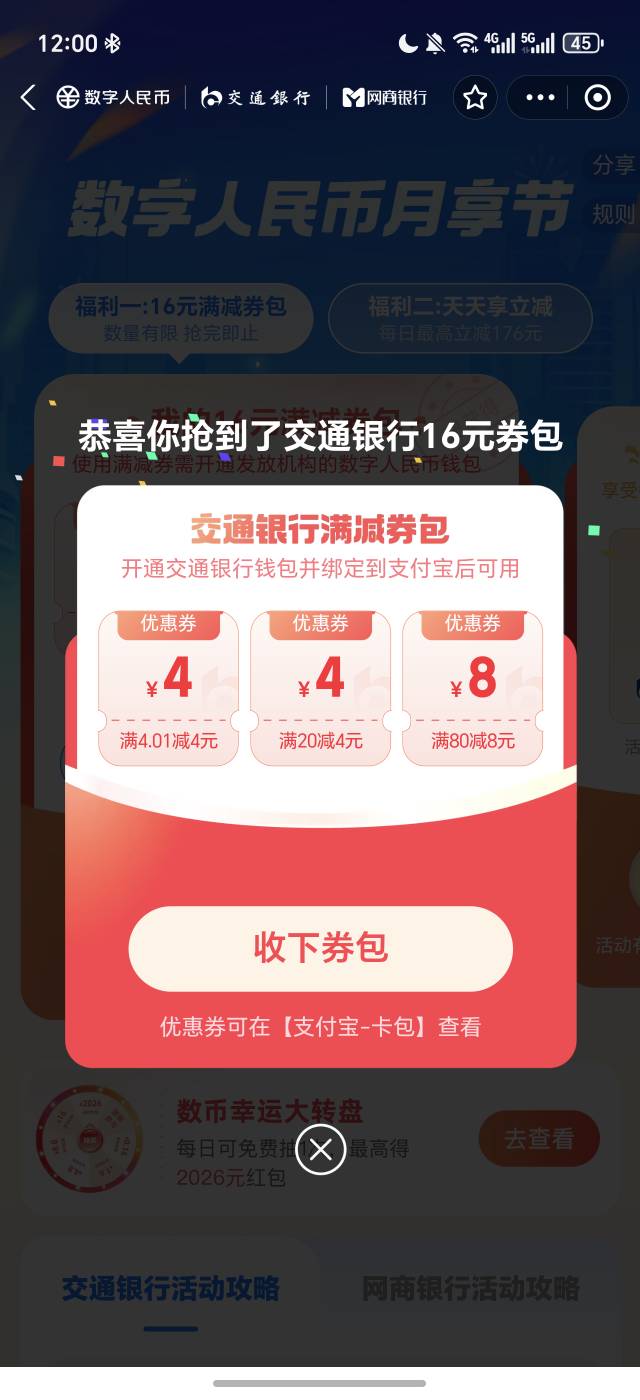 支付宝数币月享节抢16元满减券包活动