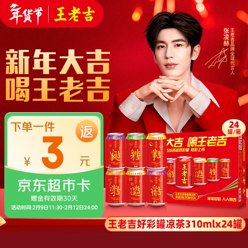 ——年货饮料炒底車——跳转APP领200-20补帖卷https://u.jd.com/lGw2ymG王老吉 红罐凉茶310ml*24罐https://u.jd.com/lawJTFJ59.8元自营包邮,新客减2元*赠3元超.市卡 Plus低至51.8元*买4件Plus到手低至48.3元/箱