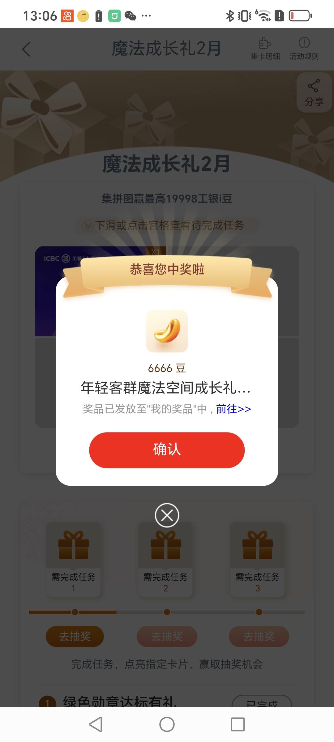 工行任务中心魔法成长礼集拼图抽奖活动
