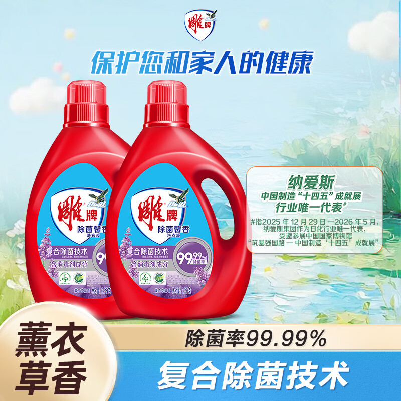 ——年货家清豪车——雕牌 馨香洗衣液 2.5kg*2瓶https://u.jd.com/lG8g0Rv59.9自营包邮,赠10超市卡*赠20元津贴 7天后兑换成E卡*折洗衣液才2.9/斤 赠品有限