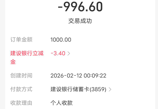 zfb建行全国1000支付最高减5每周两次