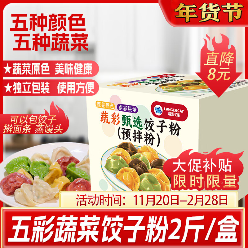 ——春节不打烊——蓝格猫 五彩蔬菜饺子粉2斤https://u.jd.com/lGpLnYF23.5元自营包邮,新客减1元*赠5元津贴 7天后兑换成E卡